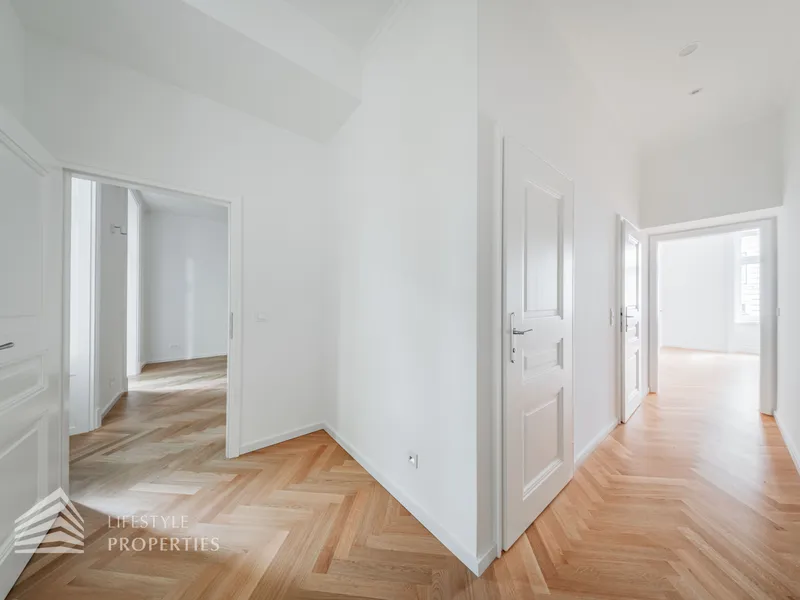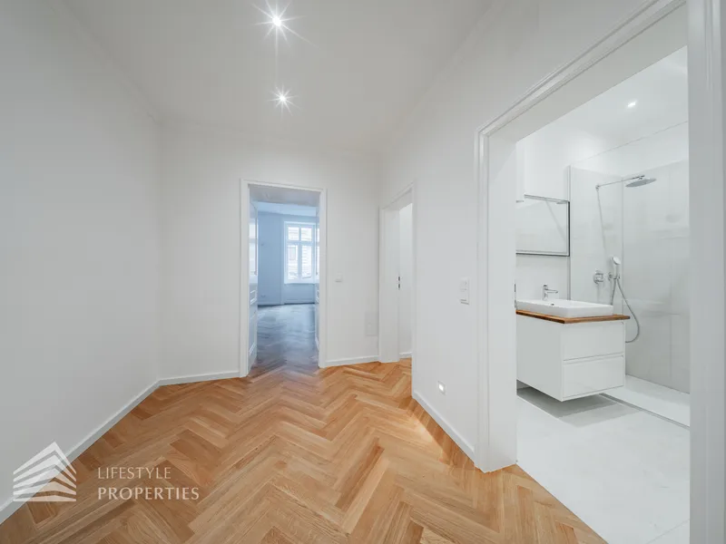 Das historische Gründerzeithaus wurde mit viel Liebe zum Detail saniert, umgestaltet und nach Nordosten hin erweitert. Während die prachtvolle Straßenfassade ihren zeitlosen Charme bewahrt, präsentiert sich das Gebäude im Inneren in einem eleganten Zusammenspiel aus klassischem „Altwiener Chic“ und zeitgemäßer Wohnqualität. Hochwertige Materialien und durchdachte Architektur machen jede Wohnung zu einem einzigartigen Zuhause.