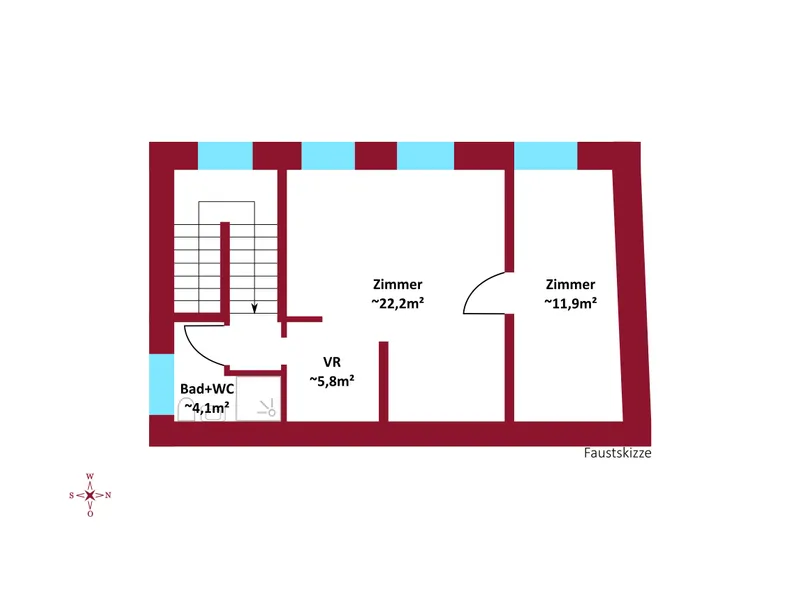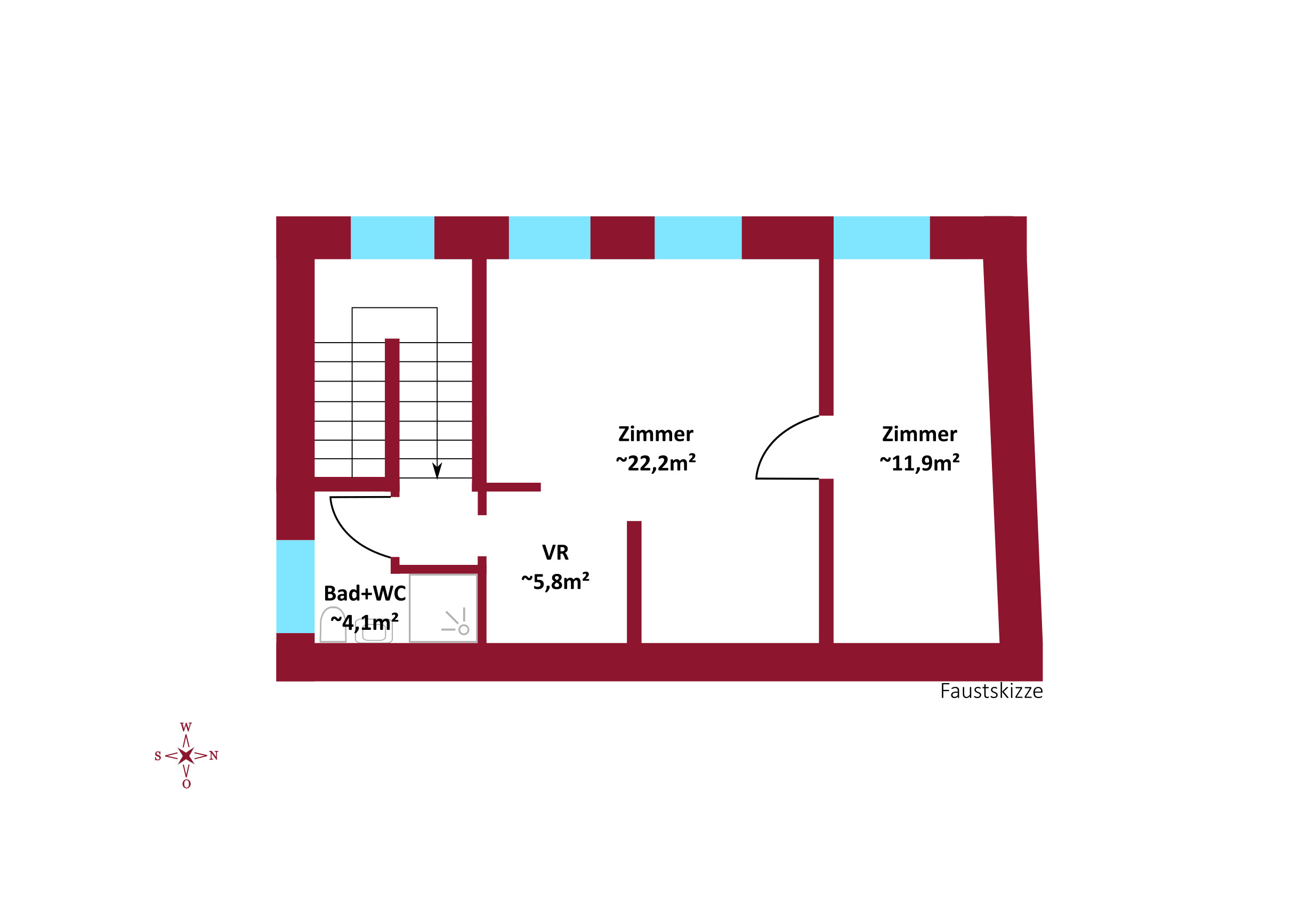 Derzeit steht Ihnen die folgende Raumaufteilung zur Verfügung: