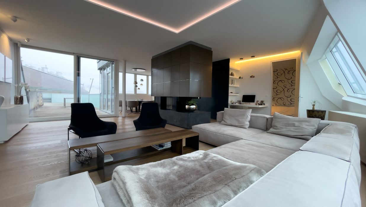 Designer Dachgeschoß-Wohnung mit großzügiger Terrasse auf einer Ebene