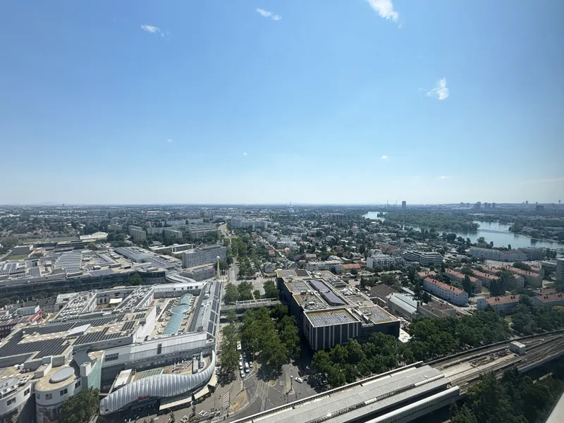 Die Lage direkt bei der U1-Station „Kagran“, gegenüber vom Donau Zentrum und nur wenige Minuten von der Alten Donau entfernt, erfüllt zentrale Anforderungen internationaler Mieter: