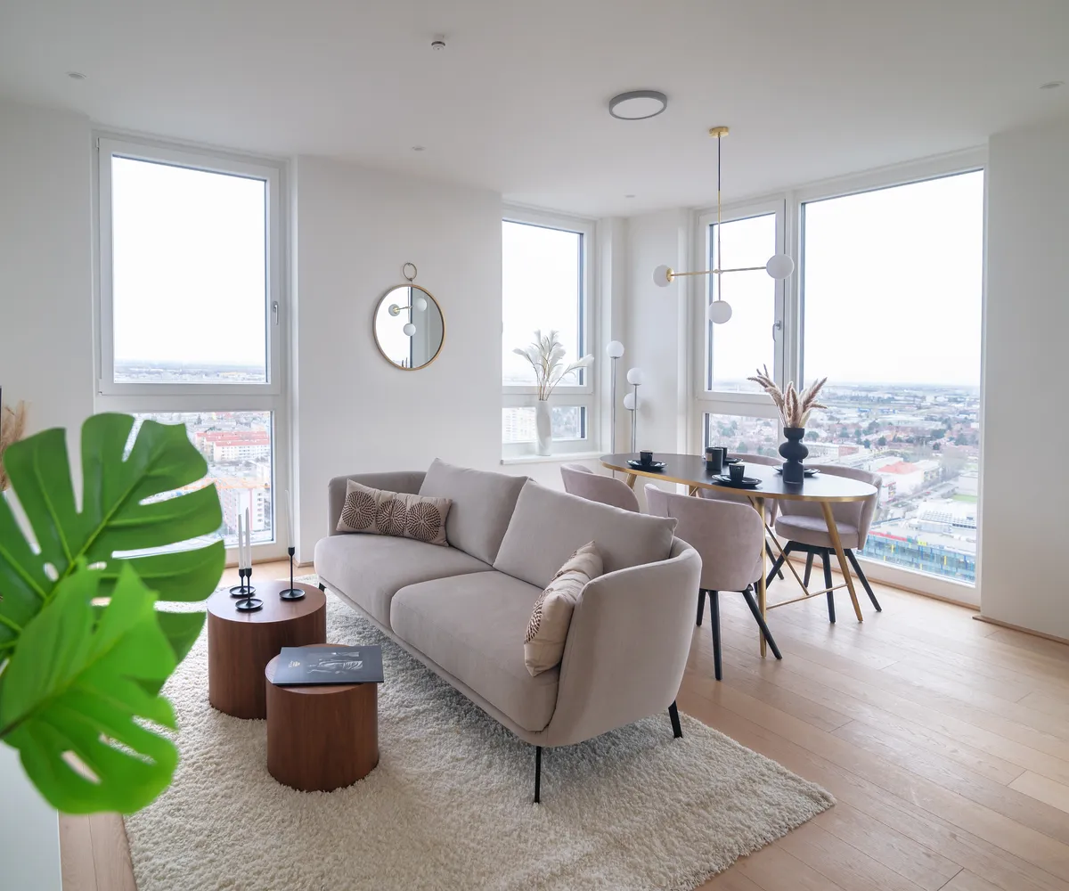 Ein neues Niveau des Wohnkomforts erwartet Sie im obersten Drittel des Wohnturms. SKY LIVING bietet ein harmonisches Zusammenspiel aus edlen Materialien, durchdachter Planung und stilvollem Design – für Menschen mit hohen Ansprüchen an Qualität und Ästhetik.