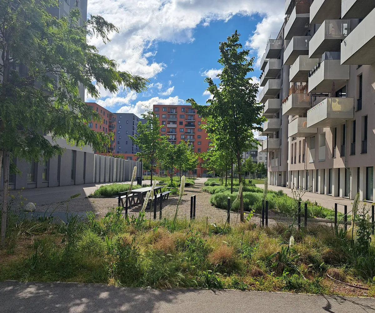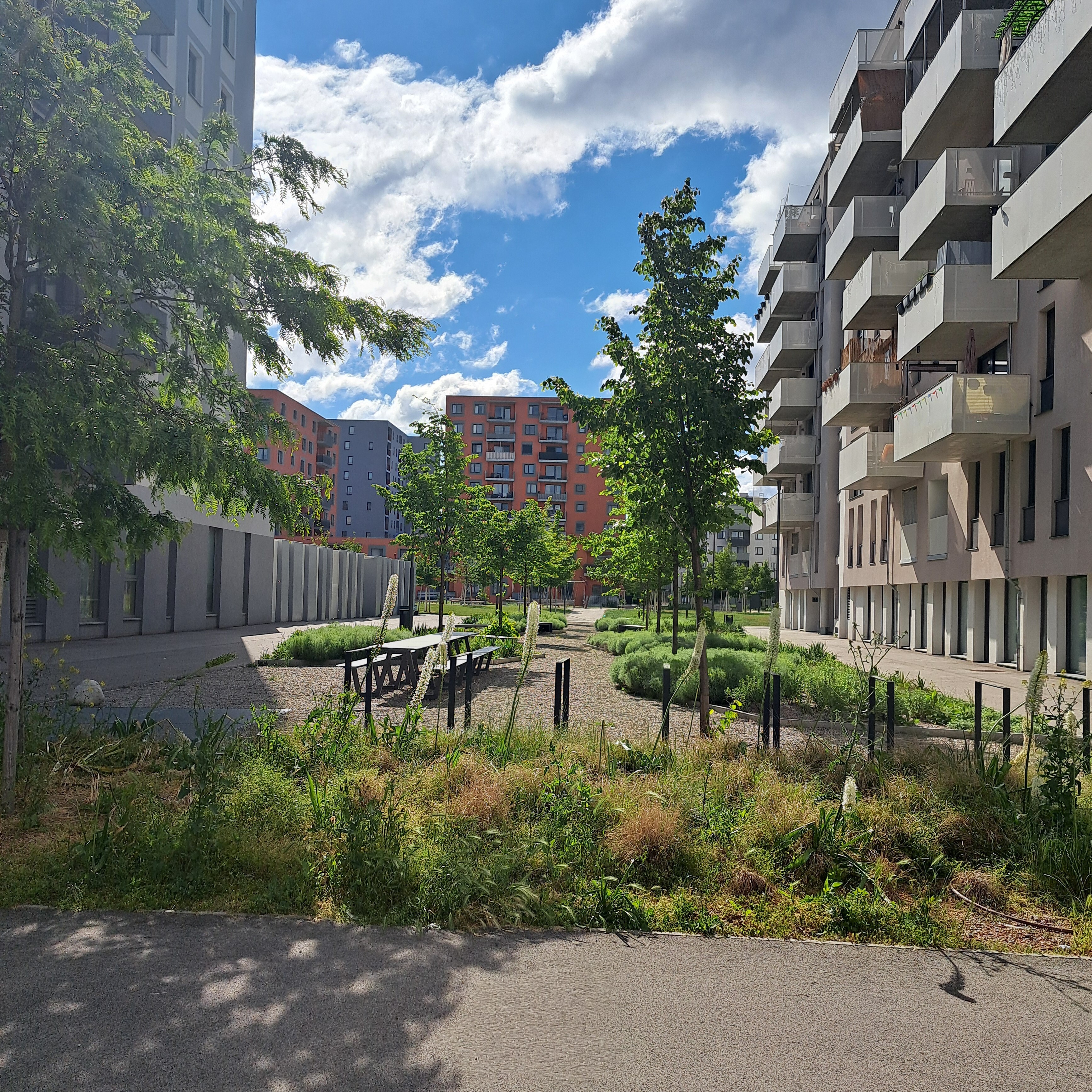 Inmitten einer der modernsten und nachhaltigsten Wohnparks Wiens, auf den ehemaligen Siemens-Gründen im schönen Floridsdorf, erwartet Sie ein fast ländliches Idyll. Hier verbinden sich Wohnen, Erholung, Arbeit und Freizeit auf 8,2 Hektar Natur. Die Parklandschaft ist ein beliebter Treffpunkt für Jung und Alt, ideal zum Spazieren, Laufen und Radfahren. Die grüne Umgebung sorgt für Ruhe und Lebensqualität, während die Gemeinschaft im Grünen zum Verweilen einlädt.