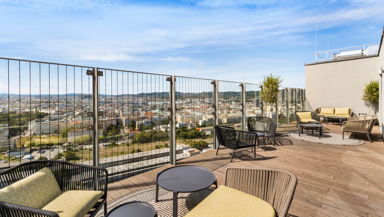 In addition to your private living area, you will benefit from spacious, high-quality designed communal areas that go far beyond the usual: Whether focused work in the co-working space, relaxed hours in the stylish residents' lounge, or active breaks in the in-house fitness and yoga studio – here you will find exactly the place you need. For social moments, you have access to an exclusive private dining room, a gaming room, and an inviting cinema. Those who wish to engage in creative activities will find the ideal setting in the professionally equipped podcast room. A special highlight is the green rooftop terrace with a community garden – a retreat above the city rooftops, inviting you to relax, garden, and enjoy.