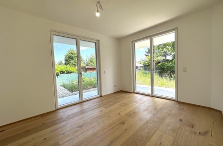 Direkter Gartenzugang aus allen Räumen : Die Wohnung überzeugt durch eine intelligente Raumaufteilung und einen direkten Bezug zur Natur. Besonders hervorzuheben ist der knapp 143 m² große Garten , der aus allen Zimmern erreichbar ist und viel Raum für Erholung, Spiel und Freizeit bietet. Alle Räume sind lichtdurchflutet und schaffen eine angenehme Wohnatmosphäre.