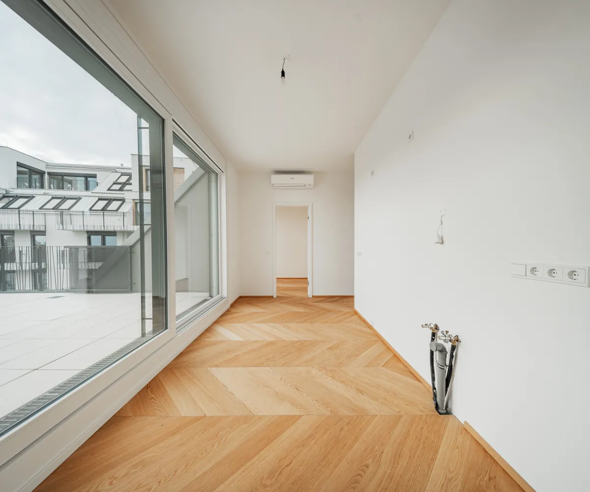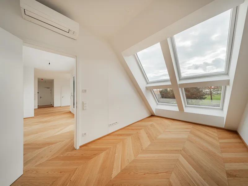 Die Wohnungen überzeugen mit hochwertigen Materialien und modernen Ausstattungsdetails. Langlebige Holz-Alu-Fenster mit Isolierverglasung sowie elektrisch angesteuerte Außenbeschattungselemente bieten hervorragenden Wohnkomfort. Edle Fischgrät-Parkettböden, großformatiges Feinsteinzeug in Bad und WC sowie Marken-Armaturen unterstreichen die Exklusivität der Ausstattung. Eine Fußbodenheizung sowie eine Deckenkühlung mittels Betonkernaktivierung sorgen für angenehmes Raumklima zu jeder Jahreszeit. Zudem sind alle Elektroinstallationen für ein Smart-Home-System vorbereitet. Ein umfassendes Sicherheitspaket mit Sicherheitstür und Videogegensprechanlage rundet das Angebot ab.