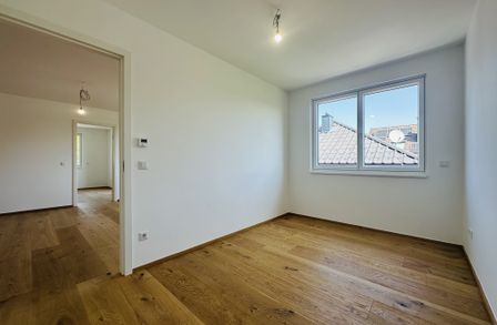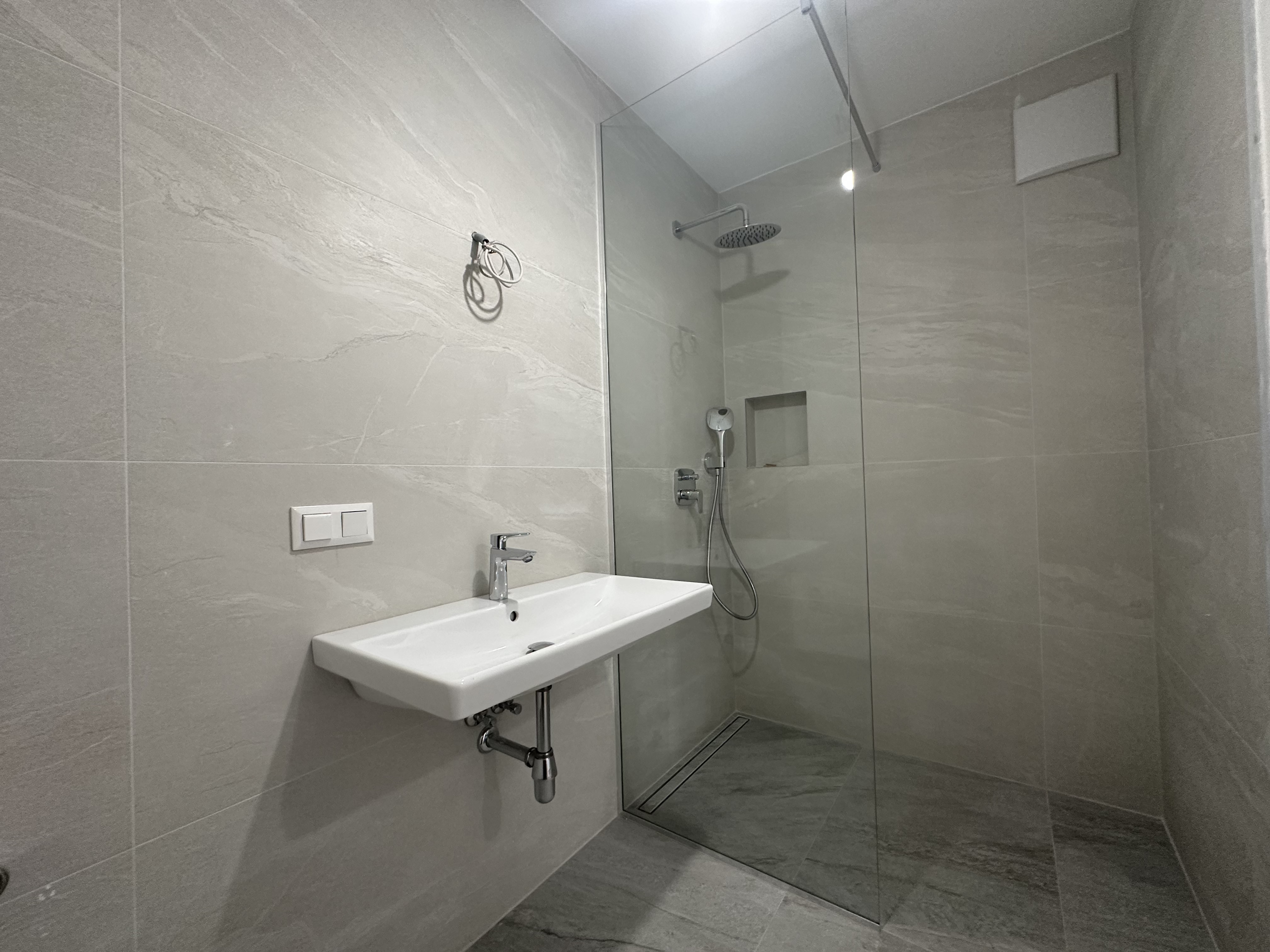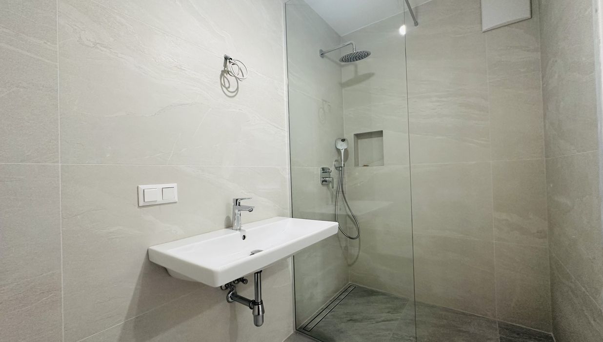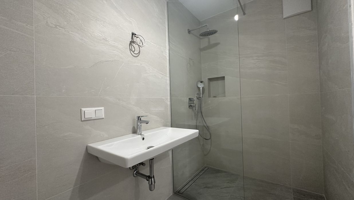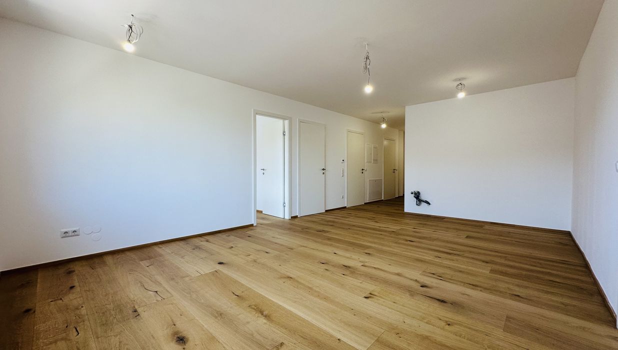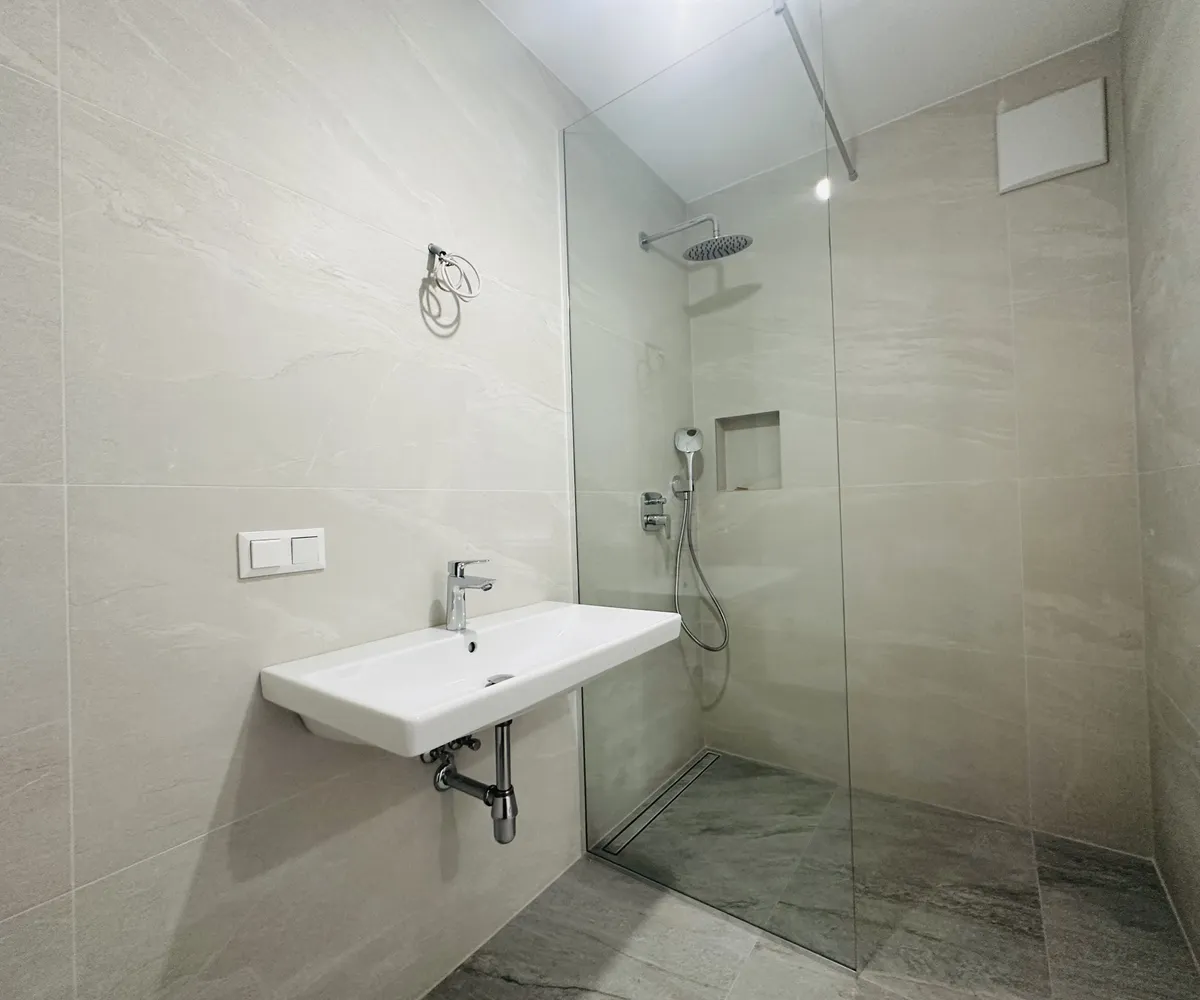 Die offene Wohnküche verbindet Kochen und Wohnen zu einem Raum, in dem Begegnung entsteht. Zwei Schlafzimmer bieten Flexibilität für all das, was das Leben mitbringt. Das Bad überrascht mit einer großzügigen Walk-in-Dusche, während das separate WC praktische Klarheit schafft.