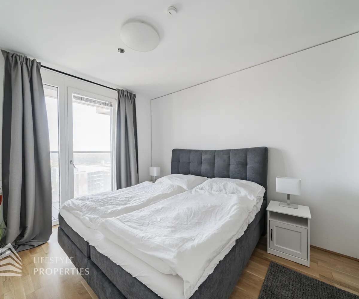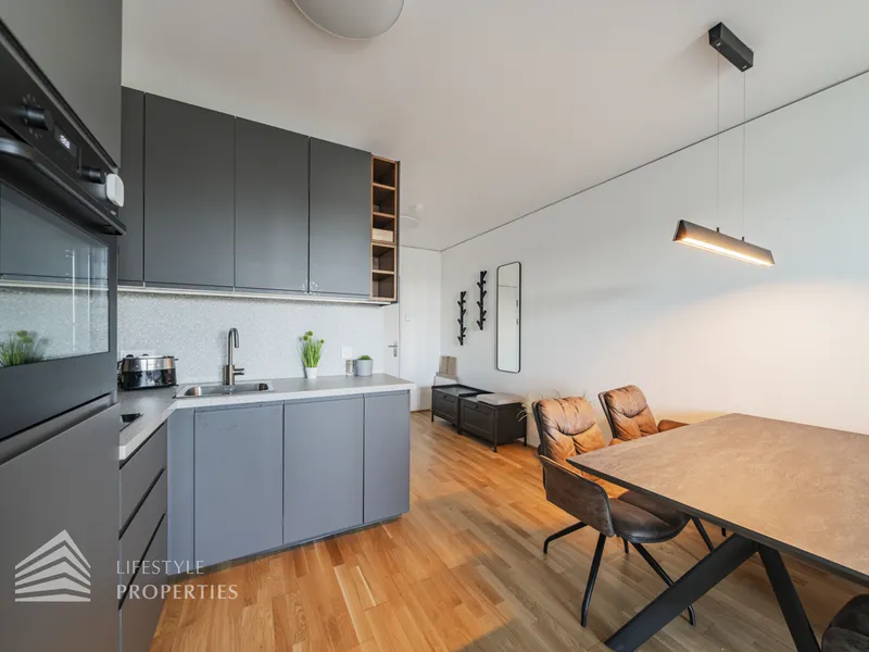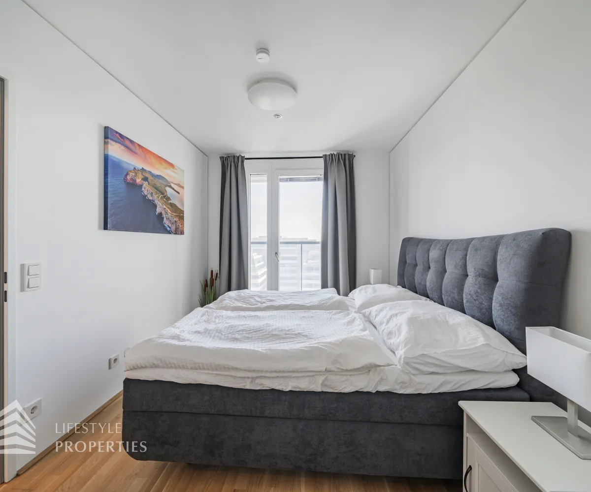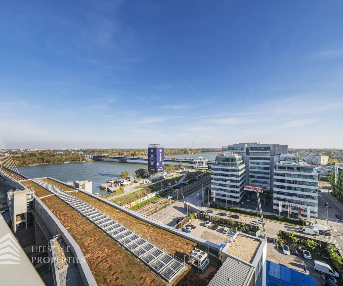 Die im 10. Liftgeschoss gelegene Wohnung erstreckt sich auf ca. 45 m² Wohnfläche und beeindruckt mit ihrer großflächigen Loggia mit unverbaubarem Blick auf die Donau. Sie befindet sich im imposanten Marina Tower, welcher im Jahr 2021 fertiggestellt wurde und viele exklusive Annehmlichkeiten bietet wie einen Concierge Service, einen Fitness- und Wellnessbereich, einen Supermarkt, ein Café, eine Gästelounge sowie ein Home-Cinema. Die Wohnung teilt sich auf in einen Eingangsbereich, eine Wohnküche, ein Schlafzimmer, ein Badezimmer sowie eine separate Toilette. Die Haupträume sind mit wunderschönem Parkett ausgekleidet, die Nassräume sind gefliest. Die Immobilie ist mit hochwertigen Möbel ausgestattet, welche bereits im Kaufpreis inbegriffen sind.