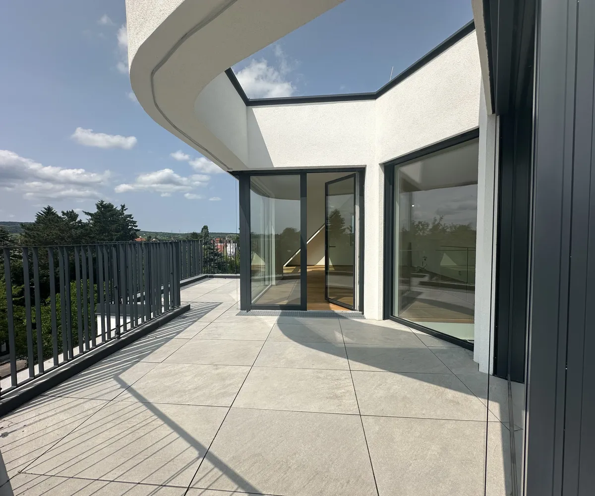 Vom Wohnbereich aus gelangen Sie direkt auf die große Terrasse – ein privates Wohlfühl-Refugium über den Dächern. Ob Sonnenbaden, Urban Gardening oder laue Sommerabende mit Freunden – dieser Außenbereich bietet außergewöhnlichen Wohnwert, absolute Privatsphäre