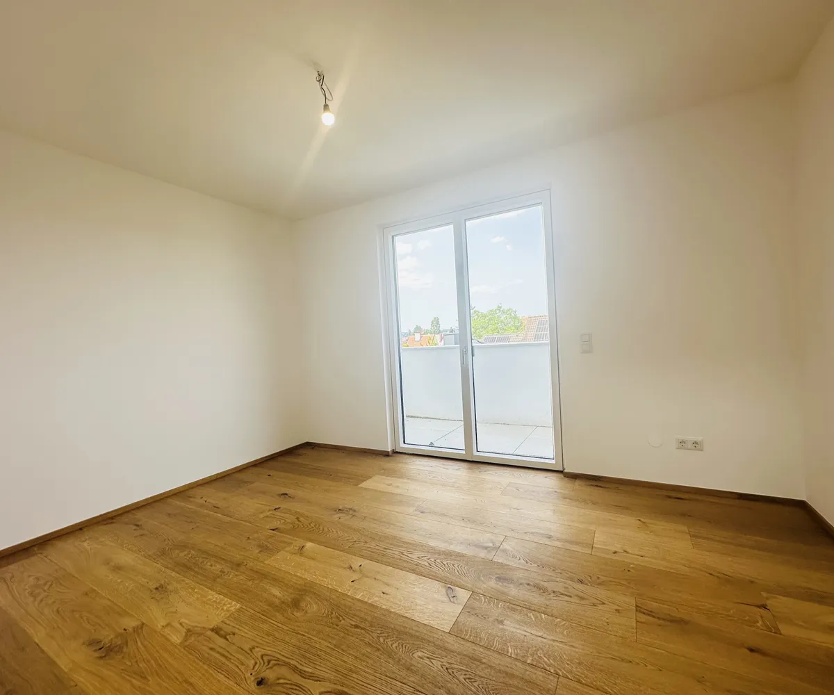 Helles, freundliches Zimmer mit Ausgang zum Balkon – ideal als Schlafzimmer, Arbeitsraum oder Rückzugsort mit viel Tageslicht.
