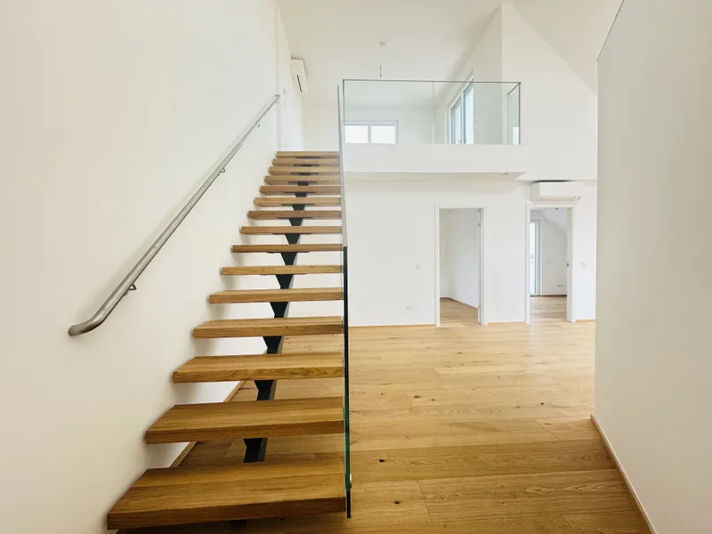 Diese stilvolle Maisonette-Wohnung verbindet Großzügigkeit mit Charme: Zwei lichtdurchflutete Ebenen, ein durchdachter Grundriss und viel Freiraum machen sie zum idealen Zuhause für Paare, Familien oder alle, die das Besondere suchen.