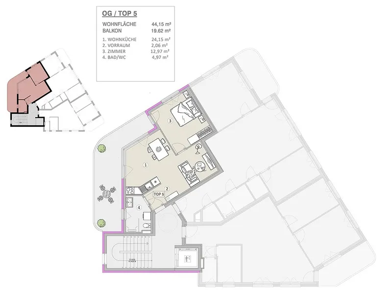 Wohnfläche: 44,15 m²