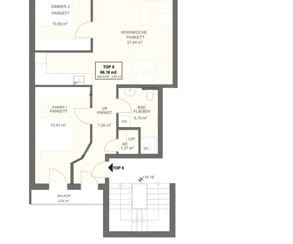 Diese Erstbezug 3-Zimmer-Wohnung mit etwa 66,18 m² Wohnfläche und einem südseitigen Balkon von ca. 3,05 m² befindet sich im 3. Neubau - Obergeschoss eines hochwertig kernsanierten Altbaugebäudes. Die Wohnung besticht durch eine kluge Raumaufteilung, zeitgemäßes Wohngefühl und elegante Ausstattung.