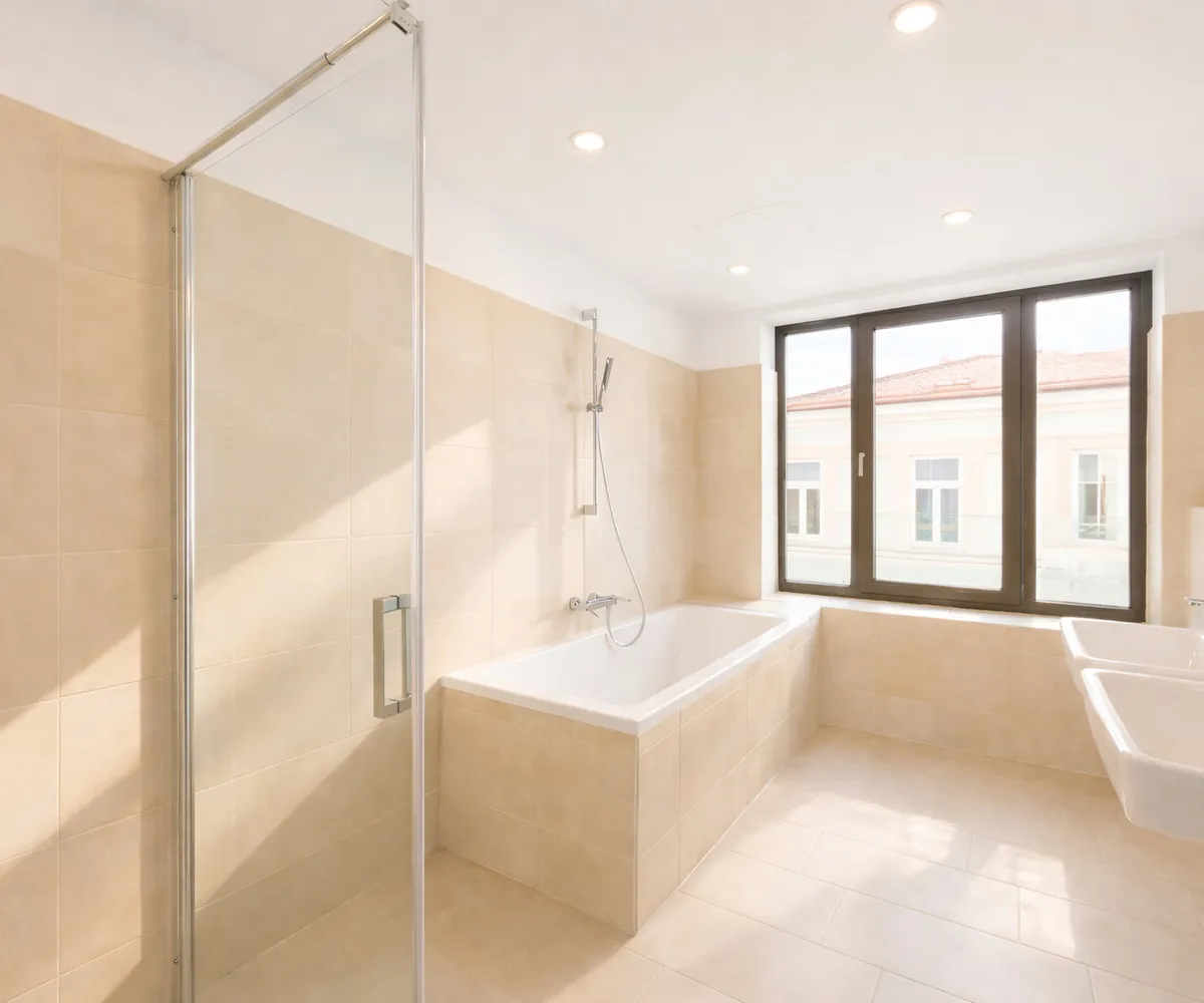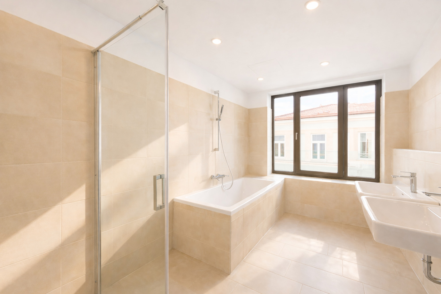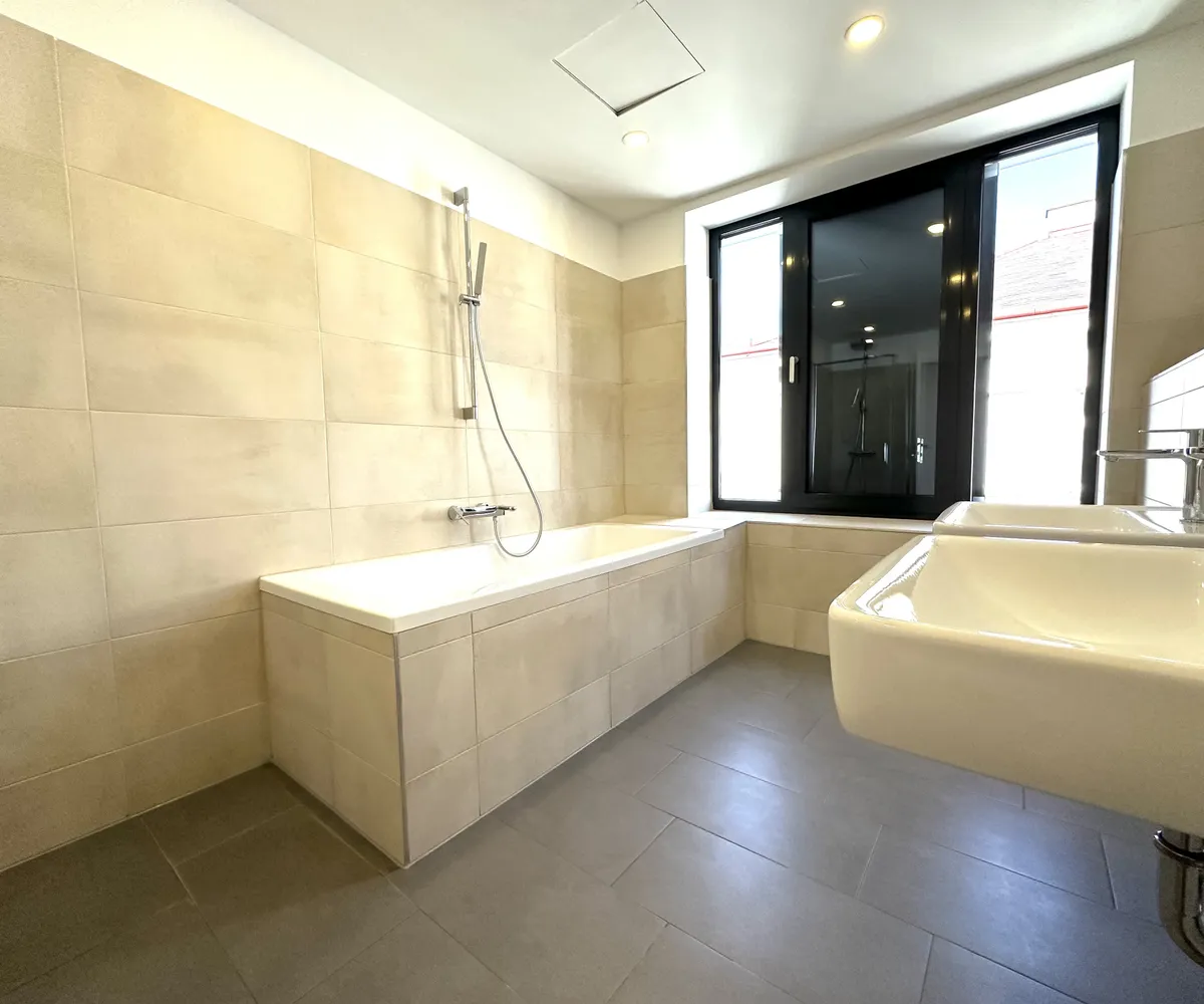 Das Master Bedroom verfügt über ein eigenes Badezimmer mit Tageslicht (Dusche & Badewanne) sowie einen begehbaren Schrankraum.