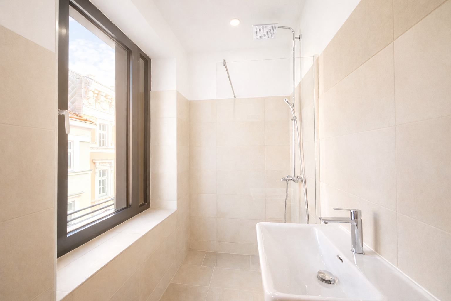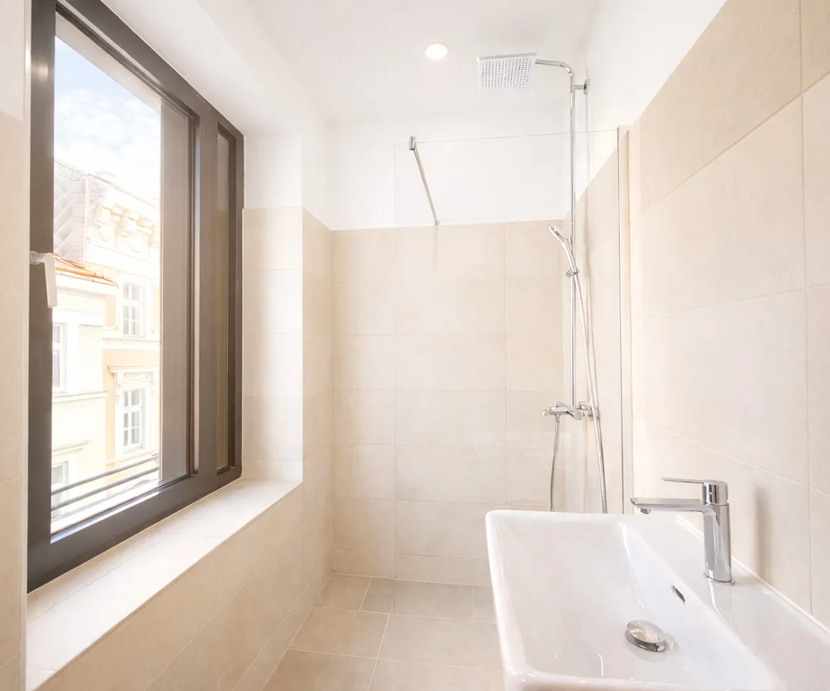 Ein weiteres Schlafzimmer punktet mit eigenem Bad (Dusche, Fenster).