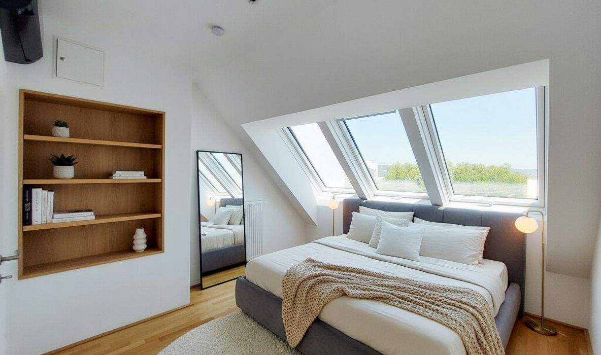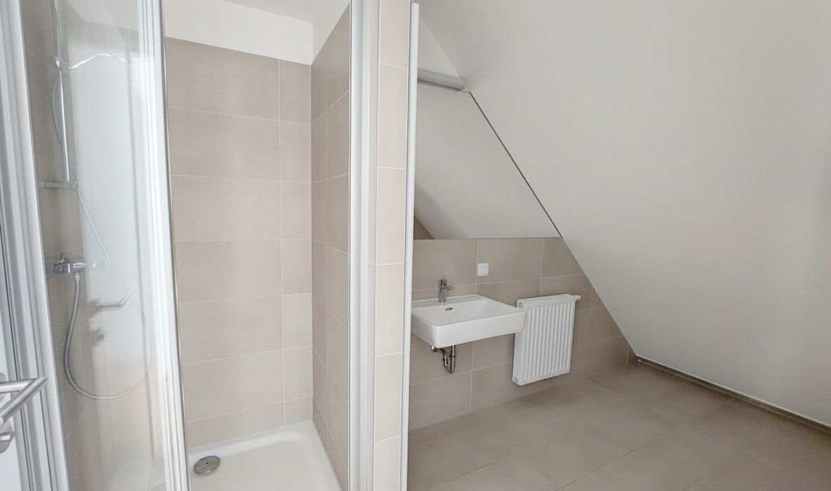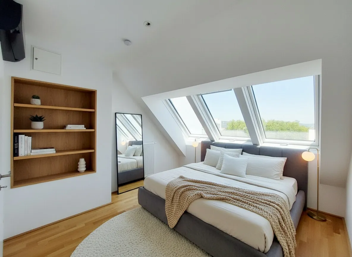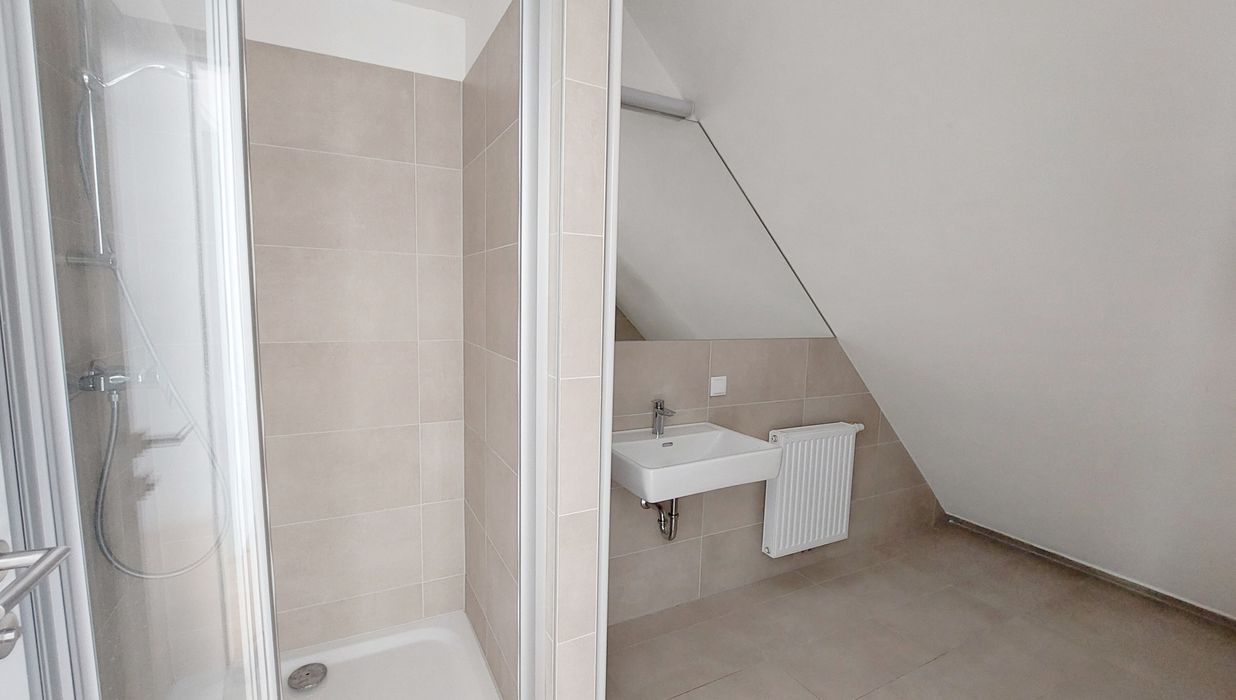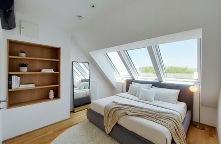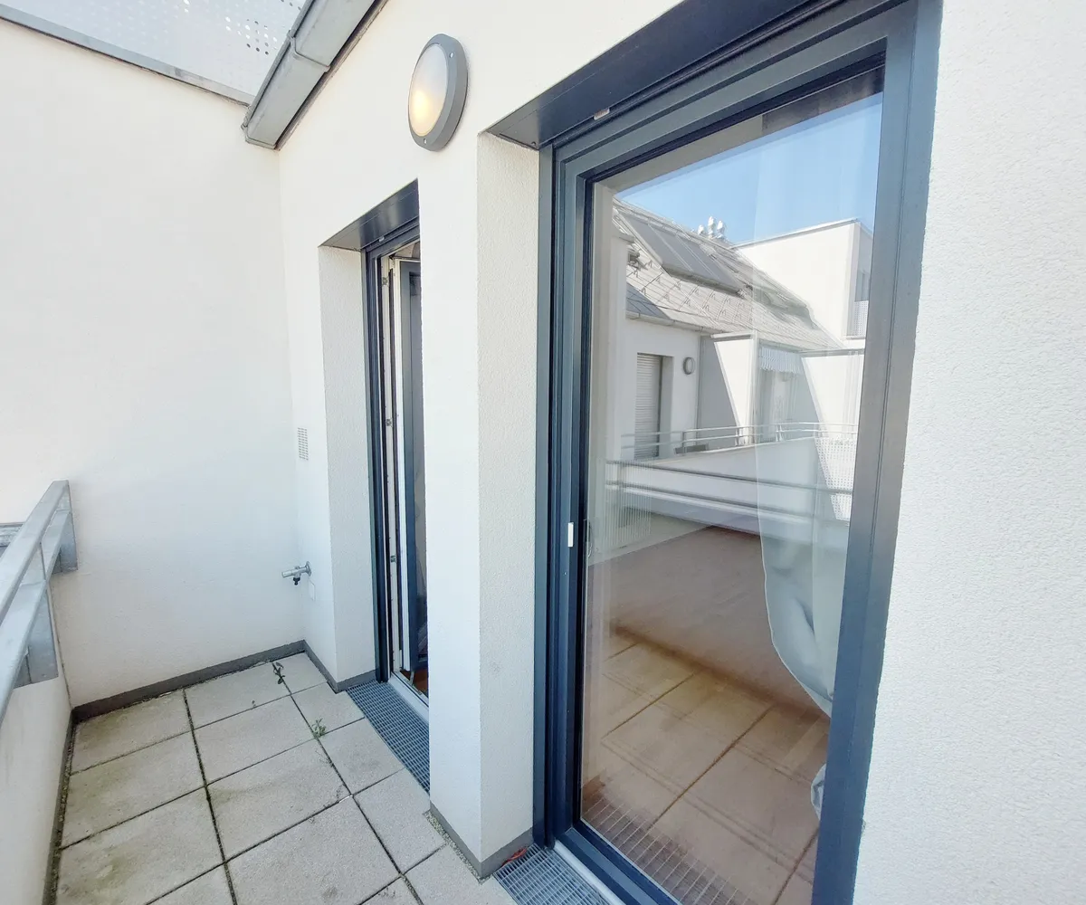 Die Wohnung befindet sich im 1. und 2. Dachgeschoß und verfügt über einen großzügigen Wohnraum mit voll ausgestatteter Küche, sowie einen Vorraum und eine Terrasse im unteren Stockwerk. Das Schlafzimmer, Badezimmer mit Dusche, WC und Waschmaschinenanschluss befinden sich im oberen Stockwerk.