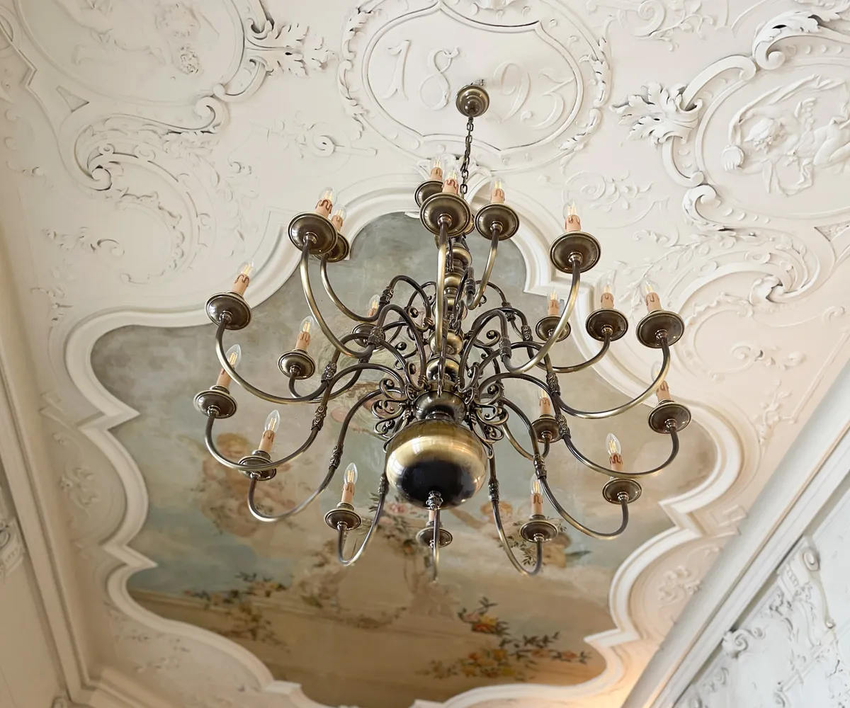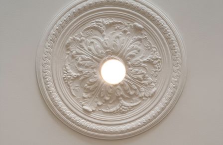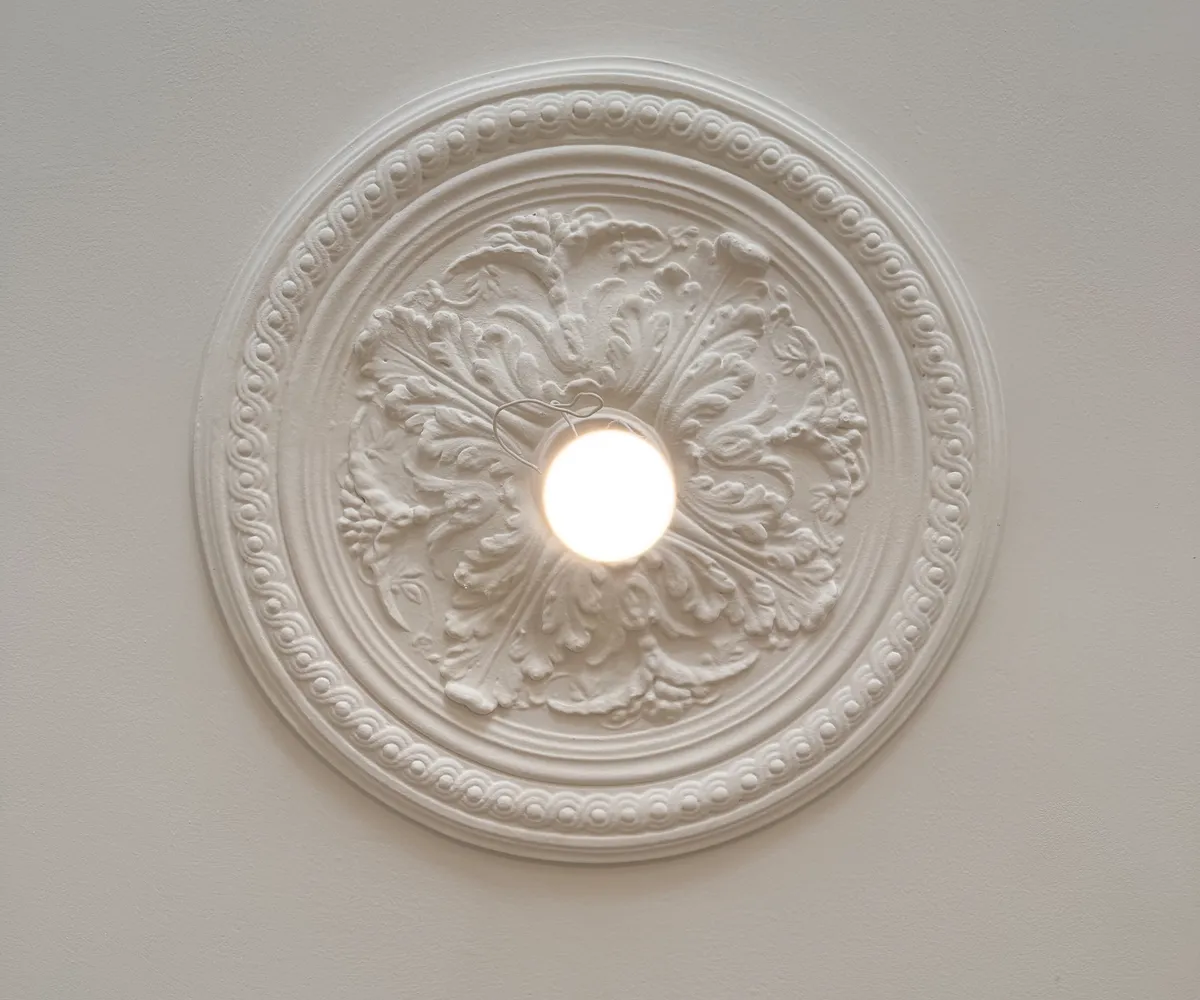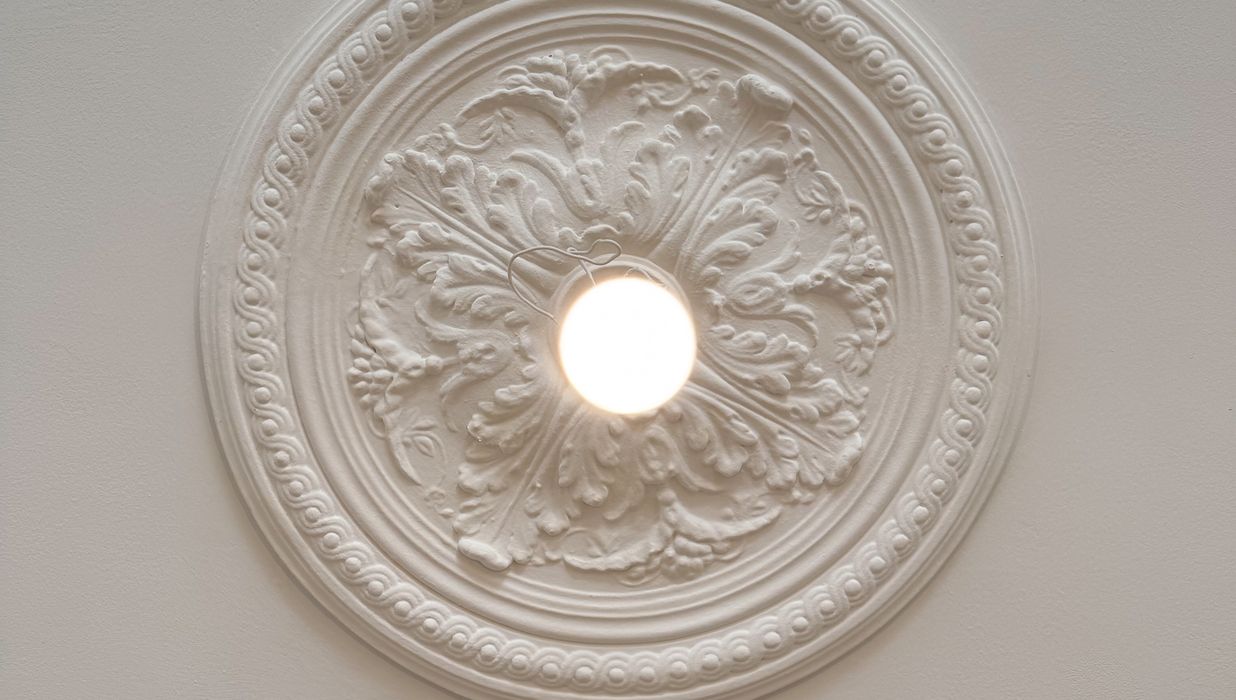 Stuckdecke mit Rosette in der Wohnküche – ein authentisches Altbau-Detail