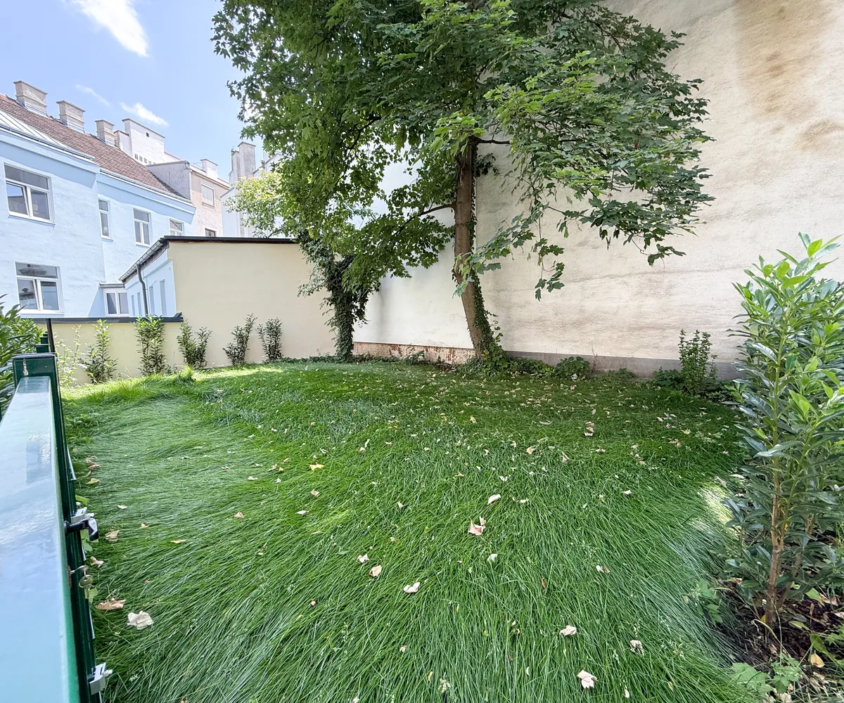 Dank der gut durchdachten Planung lädt der Garten sowohl zum geselligen Beisammensein als auch zur stillen Erholung ein – sei es bei einem Frühstück im Freien, einem Glas Wein am Abend oder entspannten Lesestunden im Grünen. Durch die Ausrichtung zum Innenhof ist eine ruhige und geschützte Atmosphäre garantiert, fernab vom städtischen Trubel.