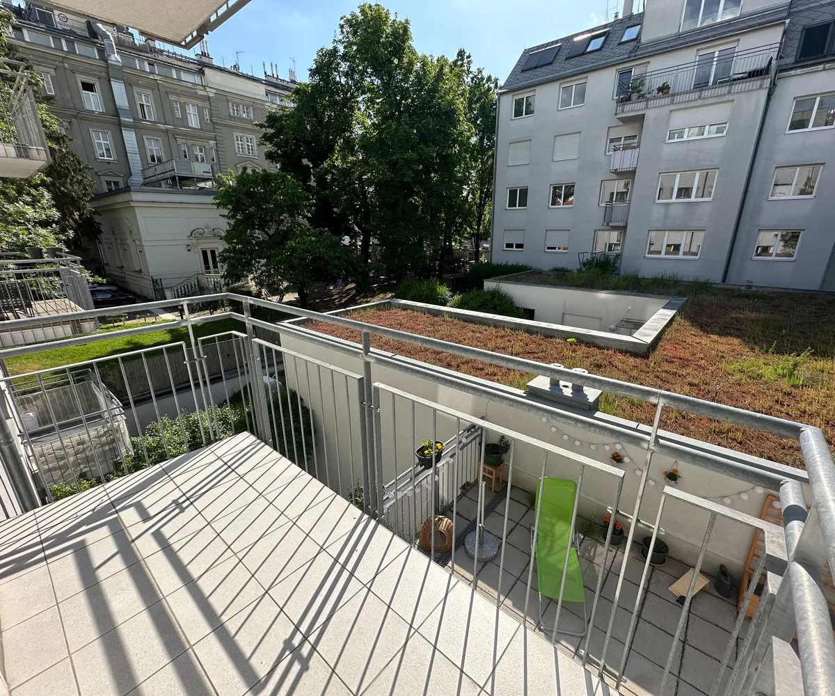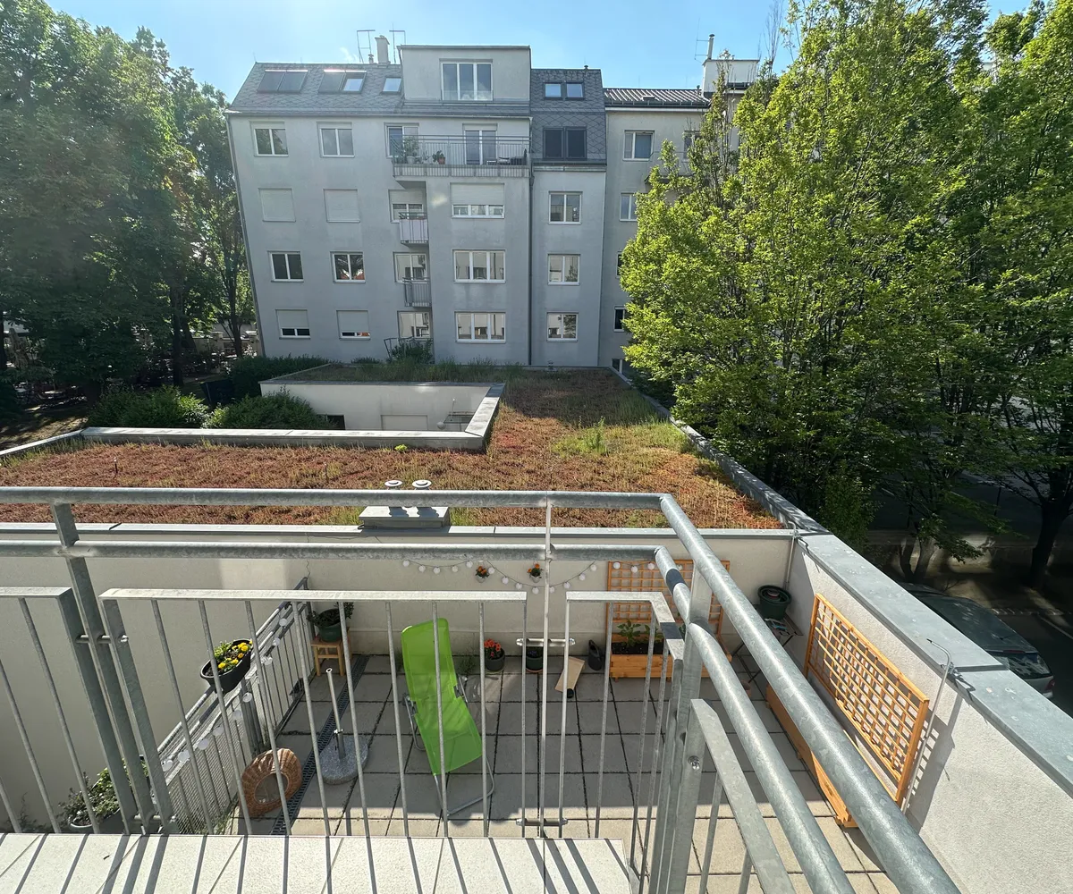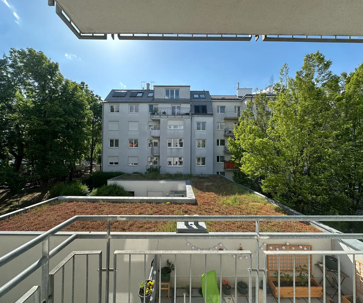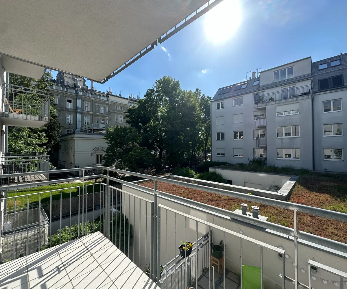 Westseitiger Balkon mit Blick in den ruhigen Innenhof