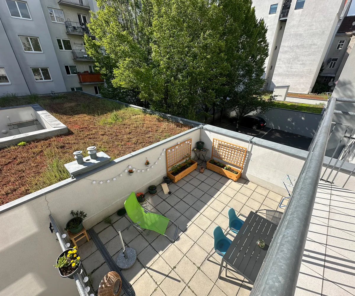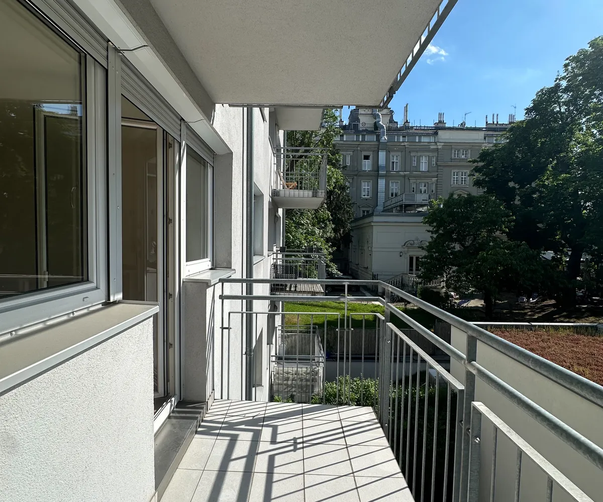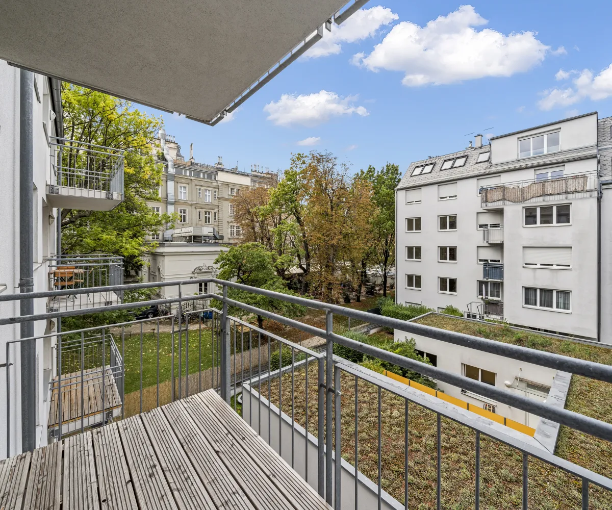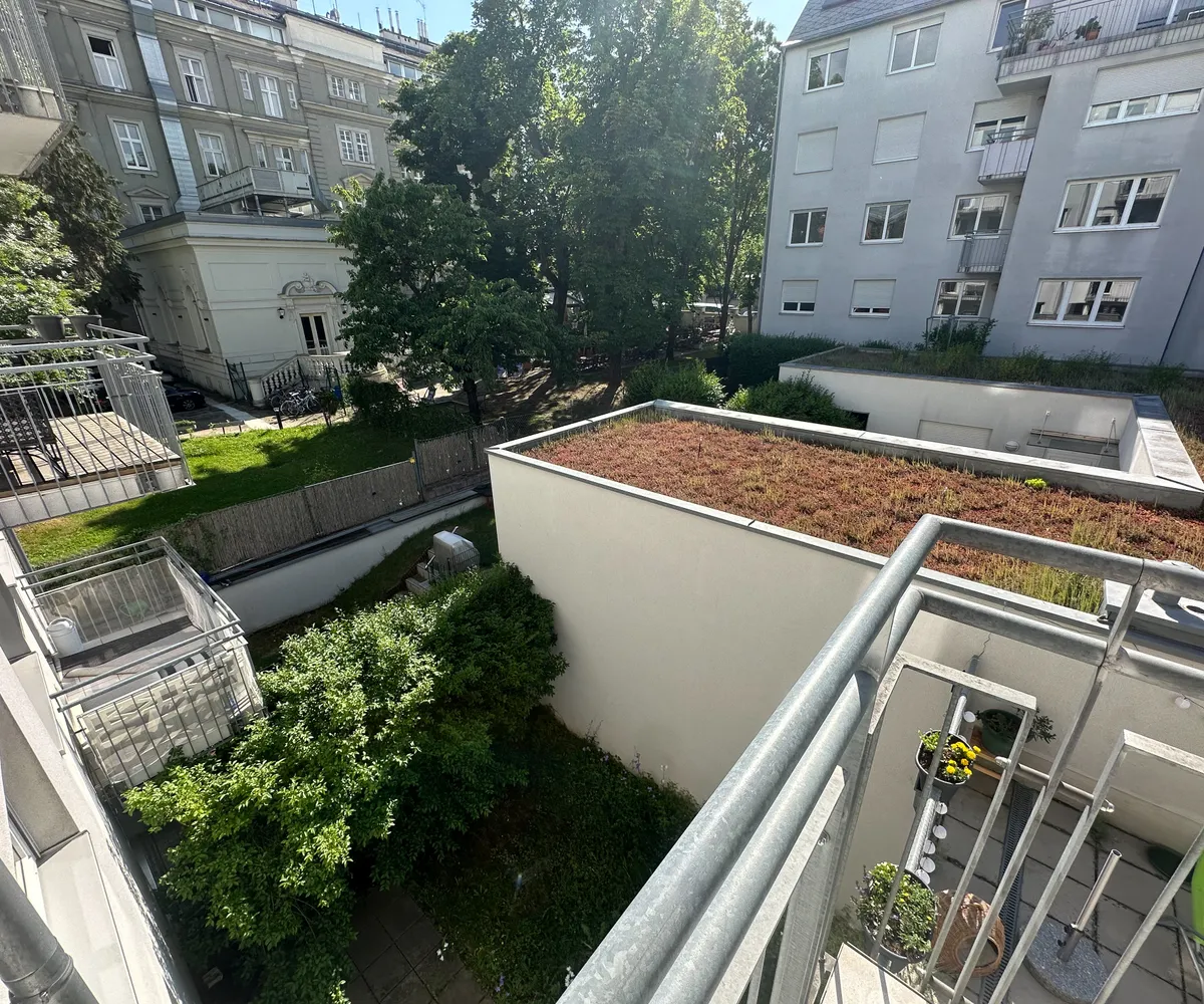 Westseitiger Balkon mit Blick in den ruhigen Innenhof