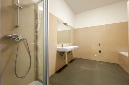 Badezimmer mit Badewanne und Dusche