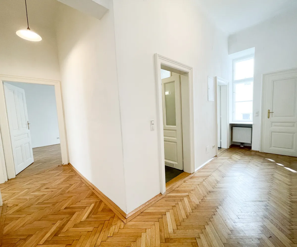 Die Baubewilligung für Balkonanbauten wurde soeben erteilt. Künftige Eigentümerinnen und Eigentümer können – auf eigene Kosten – großzügige Balkone von ca. 6 bis 8 m² errichten lassen und sich damit eine wertvolle private Freifläche schaffen. Eine Seltenheit bei einem Wiener Altbau und ein Plus für Lebensqualität und Wertsteigerung.