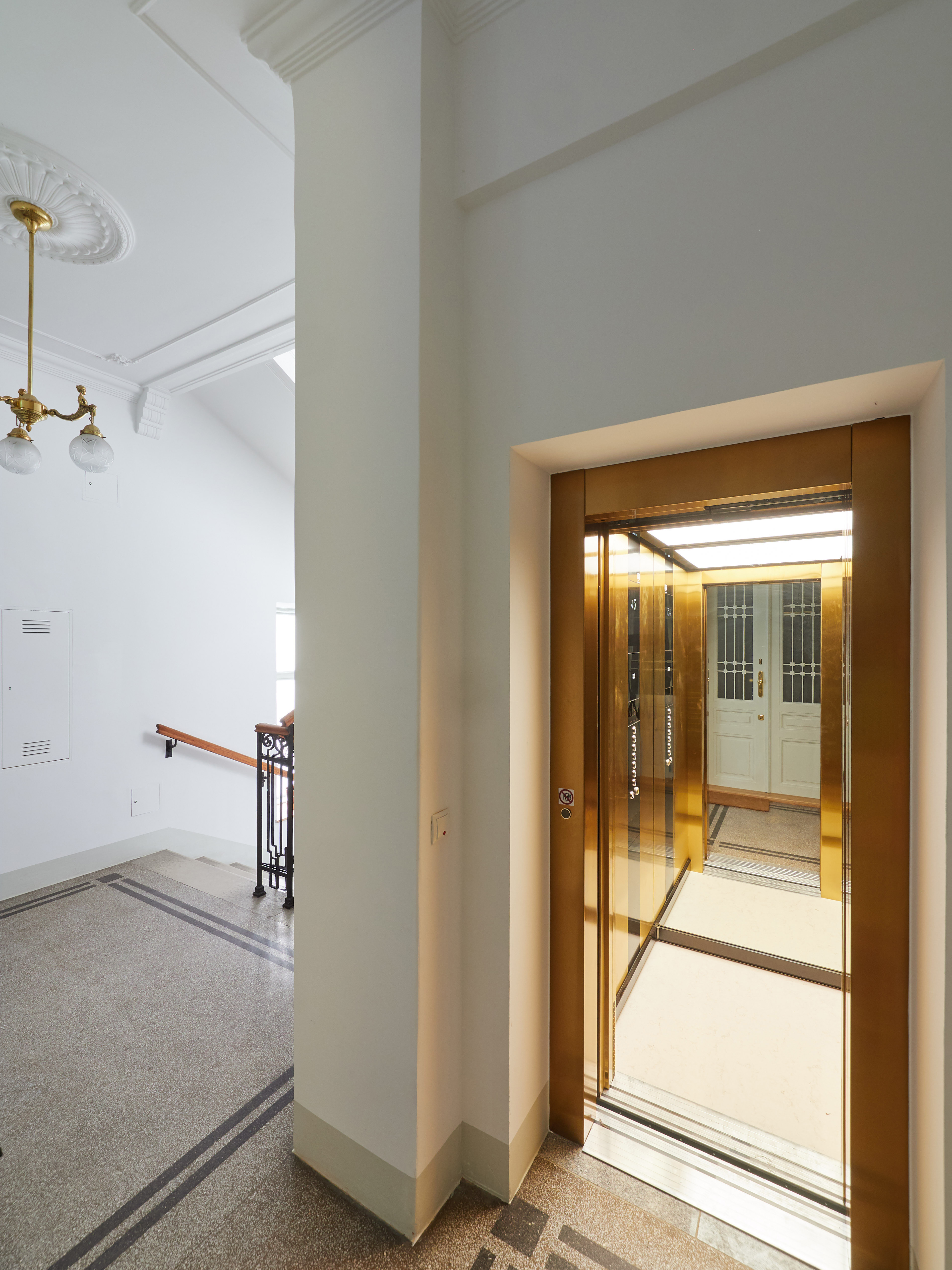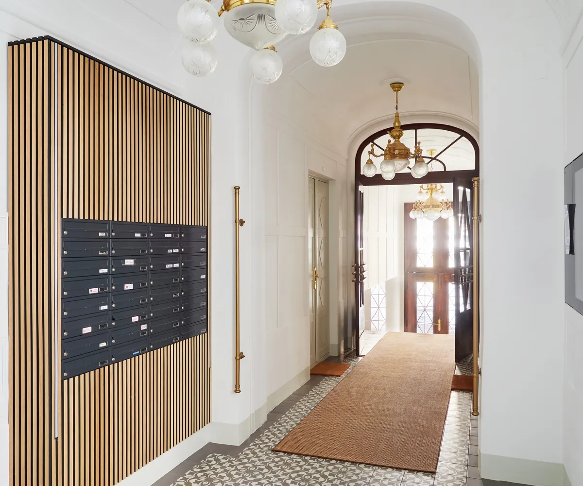 Dieses sanierte Schmuckstück verbindet historische Eleganz mit zeitgemäßem Komfort. Der Eingangsbereich beeindruckt mit edlen Holzverkleidungen und einem modernen digitalen schwarzen Brett, das die Bewohner stets auf dem Laufenden hält. Die renovierten Lichthöfe sorgen für ein helles und freundliches Ambiente. Ein Lift ist selbstverständlich vorhanden und bietet bequemen Zugang zu allen Stockwerken.