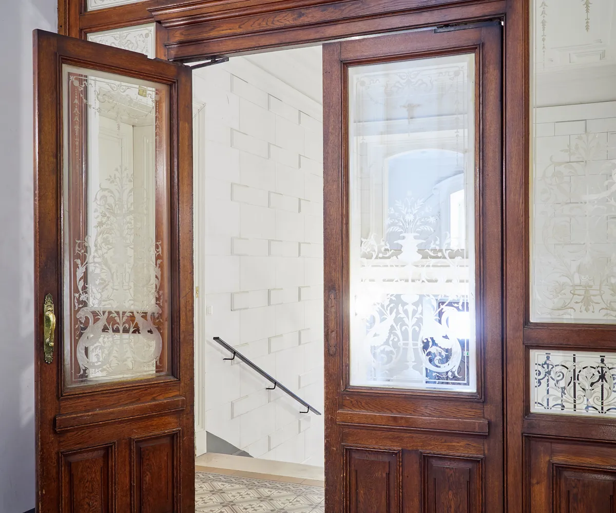 Wohnzimmer mit eleganter Flügeltüre