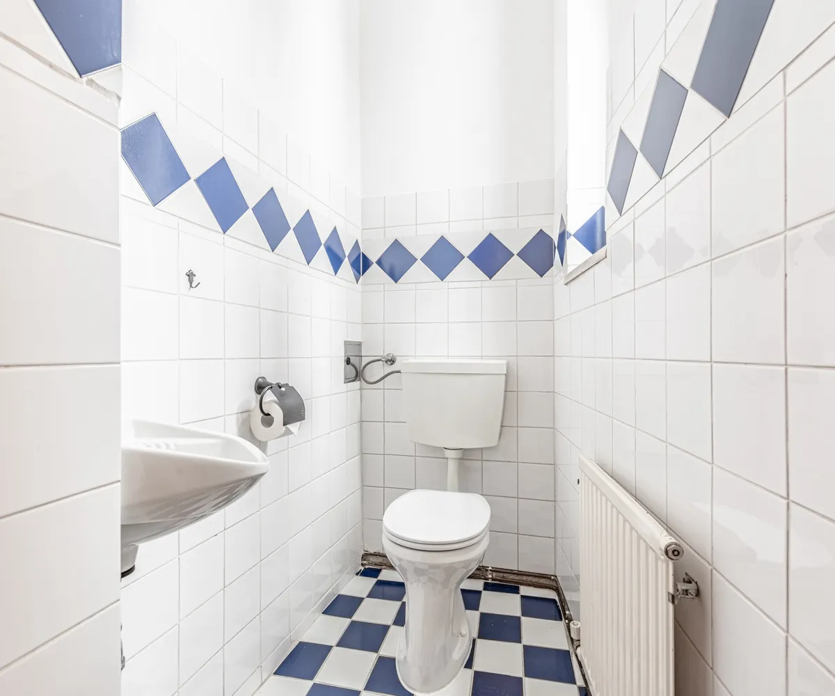 Separates WC mit Fenster und Handwaschbecken