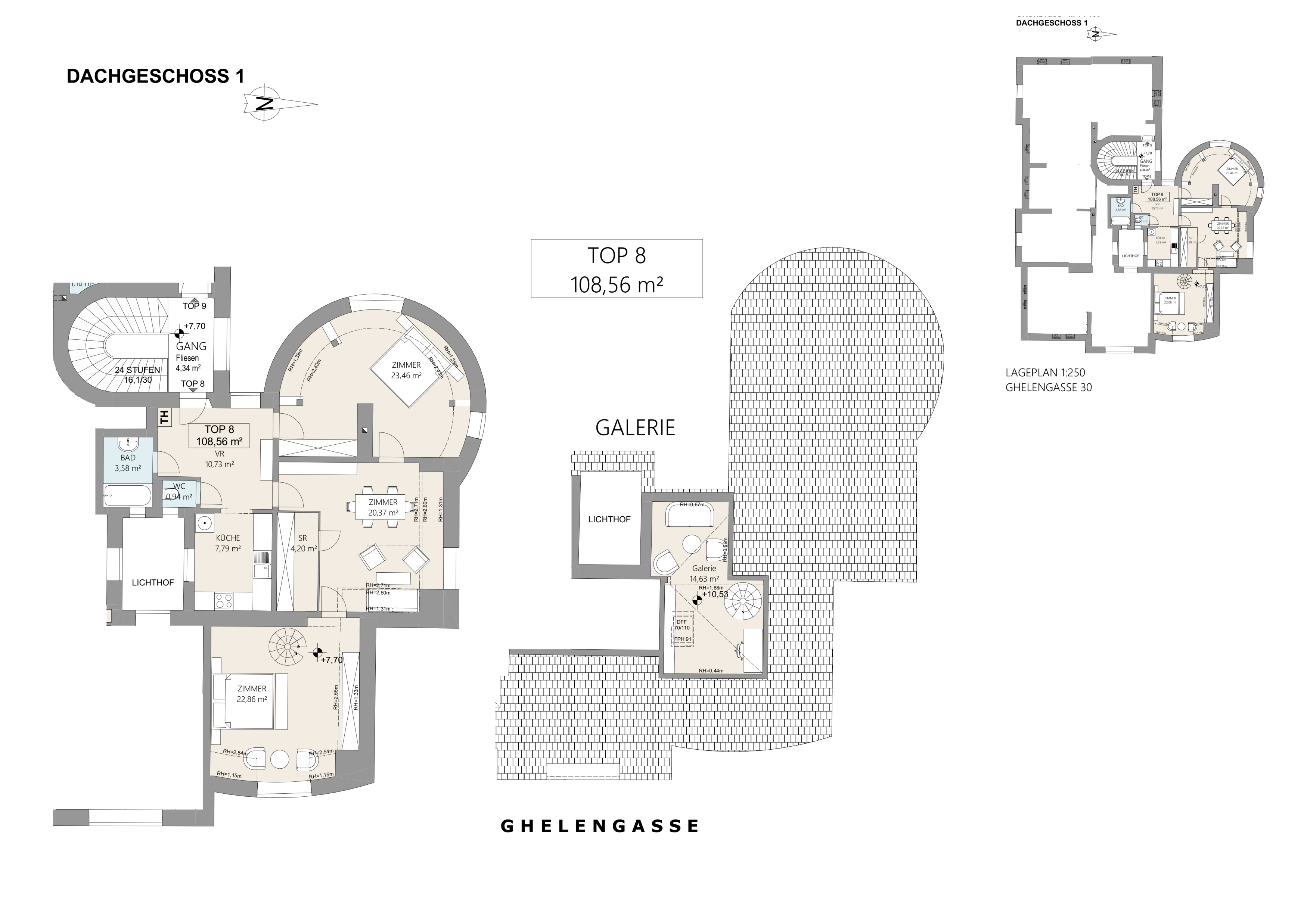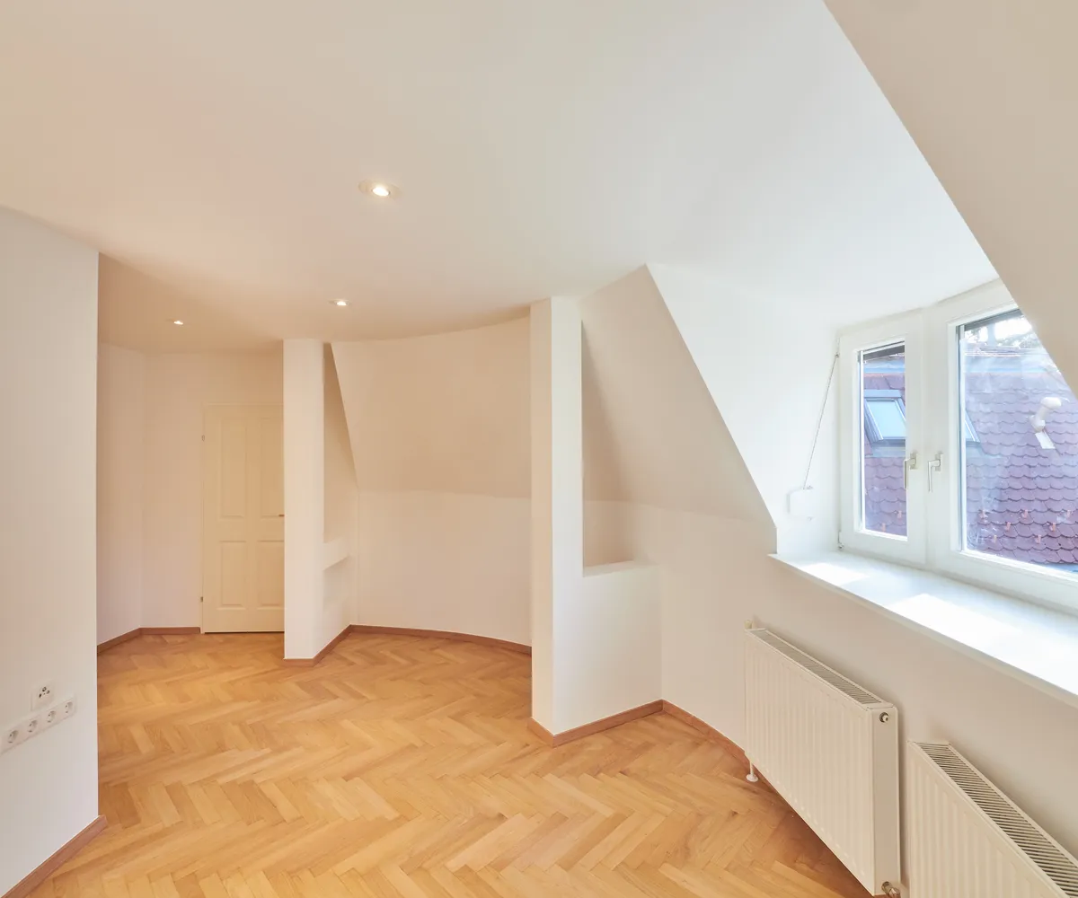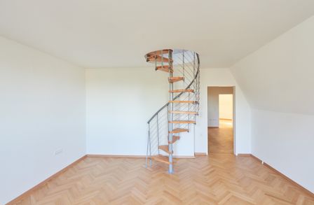 Die Wohnung befindet sich im Dachgeschoss (= 2. Stock ohne Lift) in der Ghelengasse und liegt abseits von sämtlichem Lärm einer Großstadt. Sie befindet sich in einem gepflegten, familiären Haus.