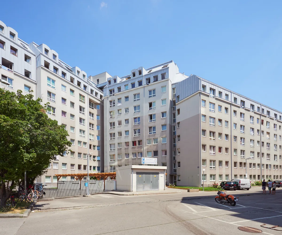Die Wohnungen liegen im 1., 7. und 8. Obergeschoß eines 1993 errichteten Mehrfamilienhaus mit glatter Fassade und Personenaufzug. Die allesamt ca. 42 m² großen 2-Zimmer-Wohnung, verfügen über einen Vorraum , ein Wohnraum + Bettnische mit Küchennische und einer Einbauküche , einem Bad mit Badewanne und Toilette , sowie einem Abstellraum .