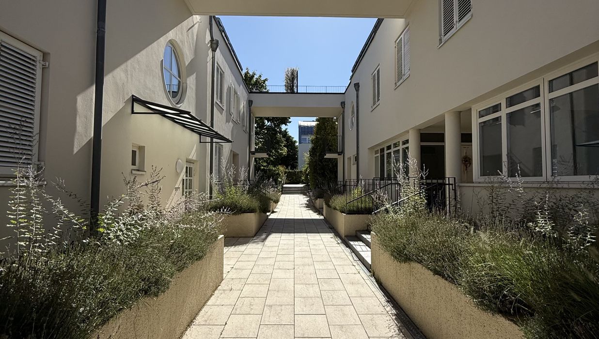 Hier beginnt der Wienerwald praktisch vor der Haustür – und direkt vor Ihrer Haustüre wartet ein Stück Wiener Filmgeschichte: Das Sieveringer Filmatelier wurde 1914 als Teil der Sascha-Filmfabrik errichtet. Das Originaltor der Wien-Film dient noch heute als Zugang zum Wohnatelier – ein charmantes Detail, das Geschichte und Gegenwart verbindet.