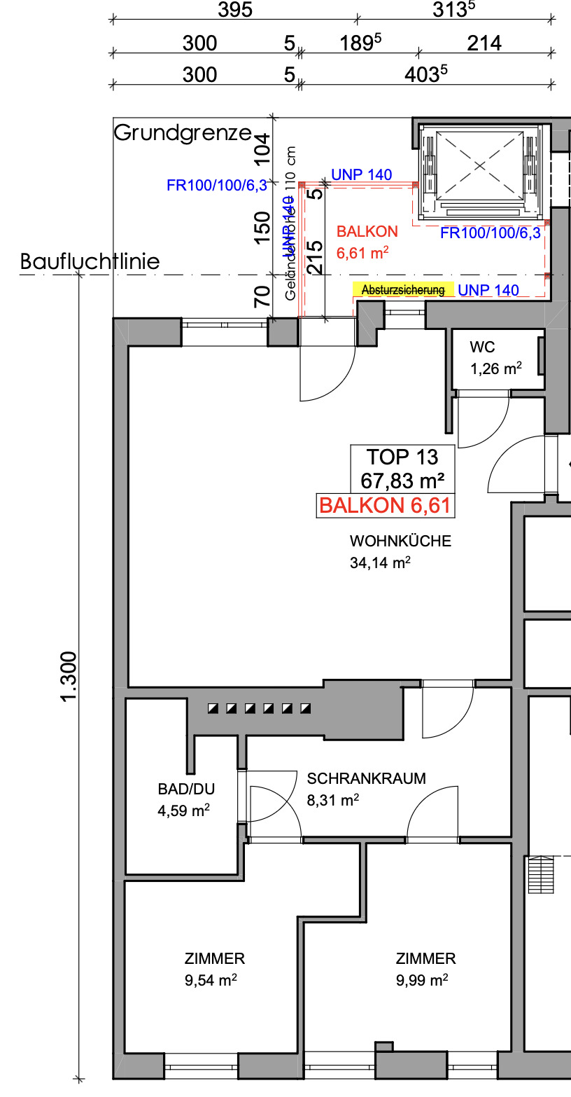 *optionaler Balkon: die Bewilligung für einen Balkon mit ca. 6,61m² im Innenhof liegt vor (siehe Plan) und kann auf Kosten des Käufers errichtet werden