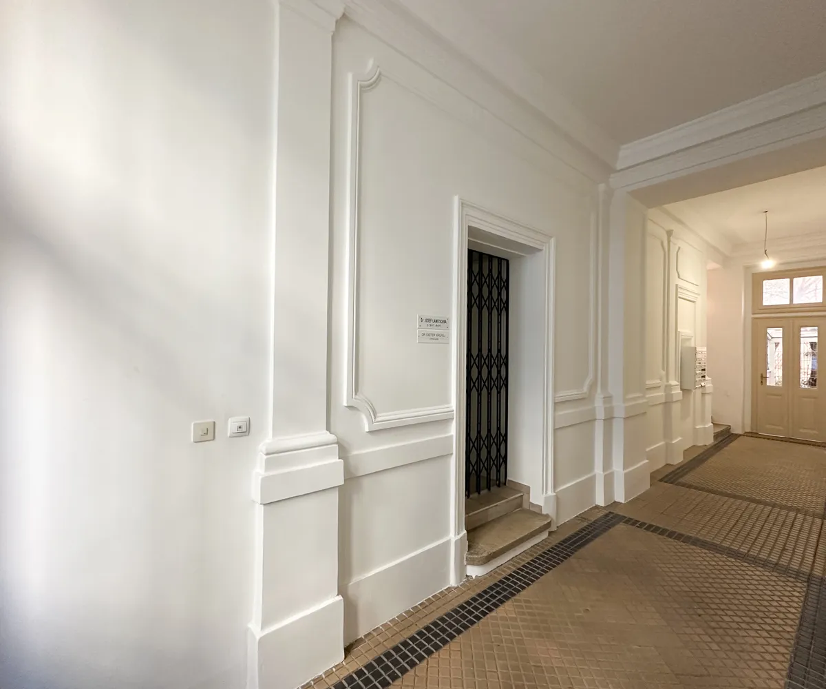 Ein Personenaufzug ermöglicht einen bequemen Zugang zum Dachgeschoss, und ein Kellerabteil gehört ebenfalls zur Wohnung.