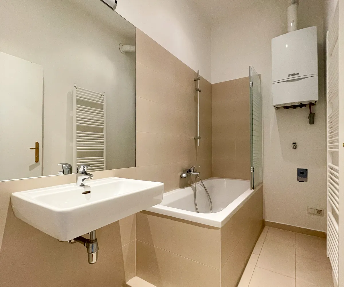 Die Wohnung liegt im 2. Obergeschoß eines Altbaus mit glatter Fassade. Sie verfügt über zwei Zimmer mit idealer Größe, einer modernen und gut ausgestatteten neuen Küche, einem neuen Badezimmer mit Wanne sowie einem extra WC.