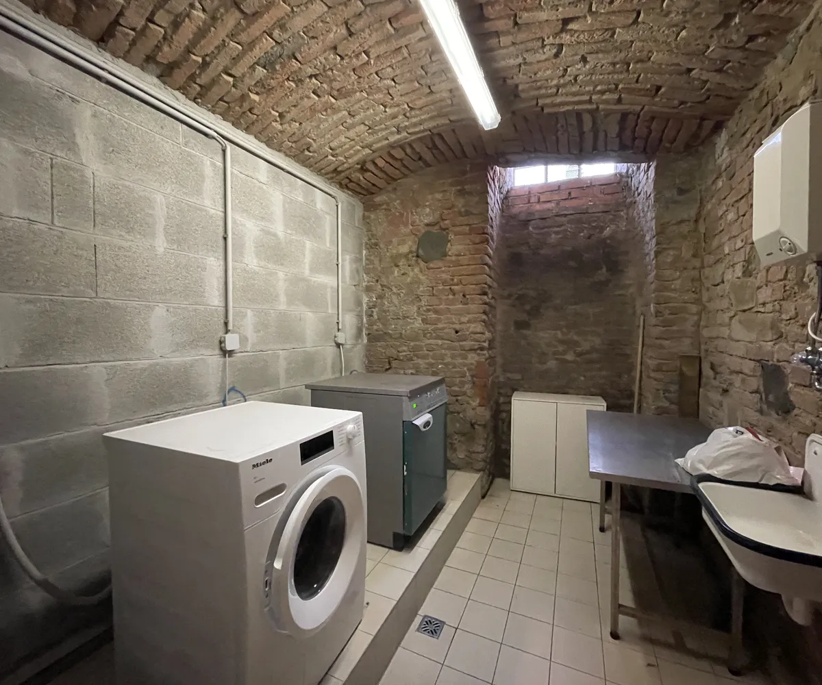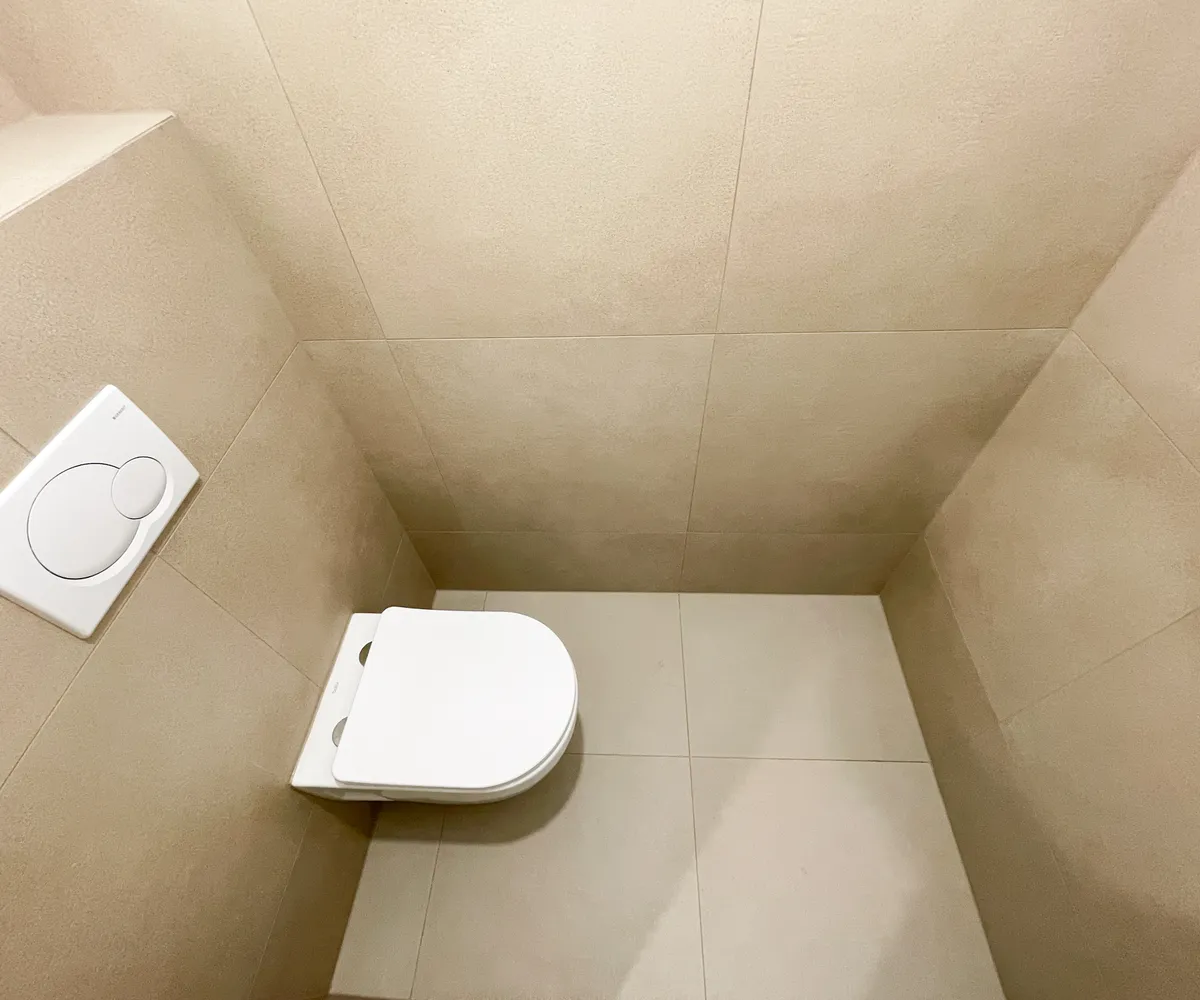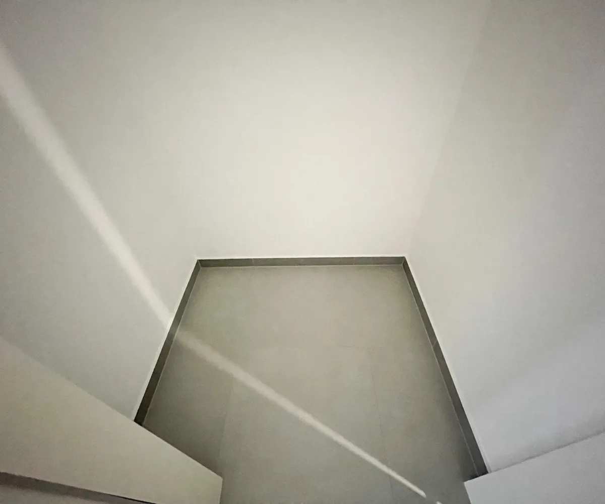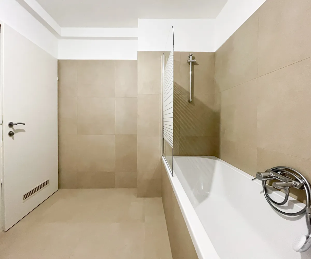 Der gesamte Fliesenboden im Vorraum und Abstellraum wurde gegen neue moderne großformatige Steinzeug-Fliesen getauscht und der Treppenaufgang mit stylischer Glaswand wurde ebenfalls komplett erneuert.