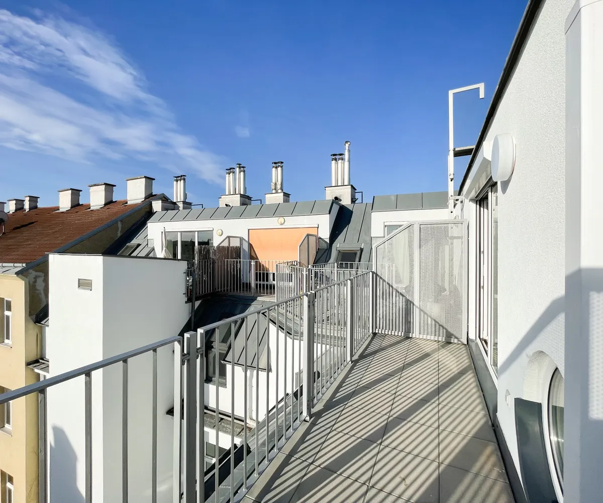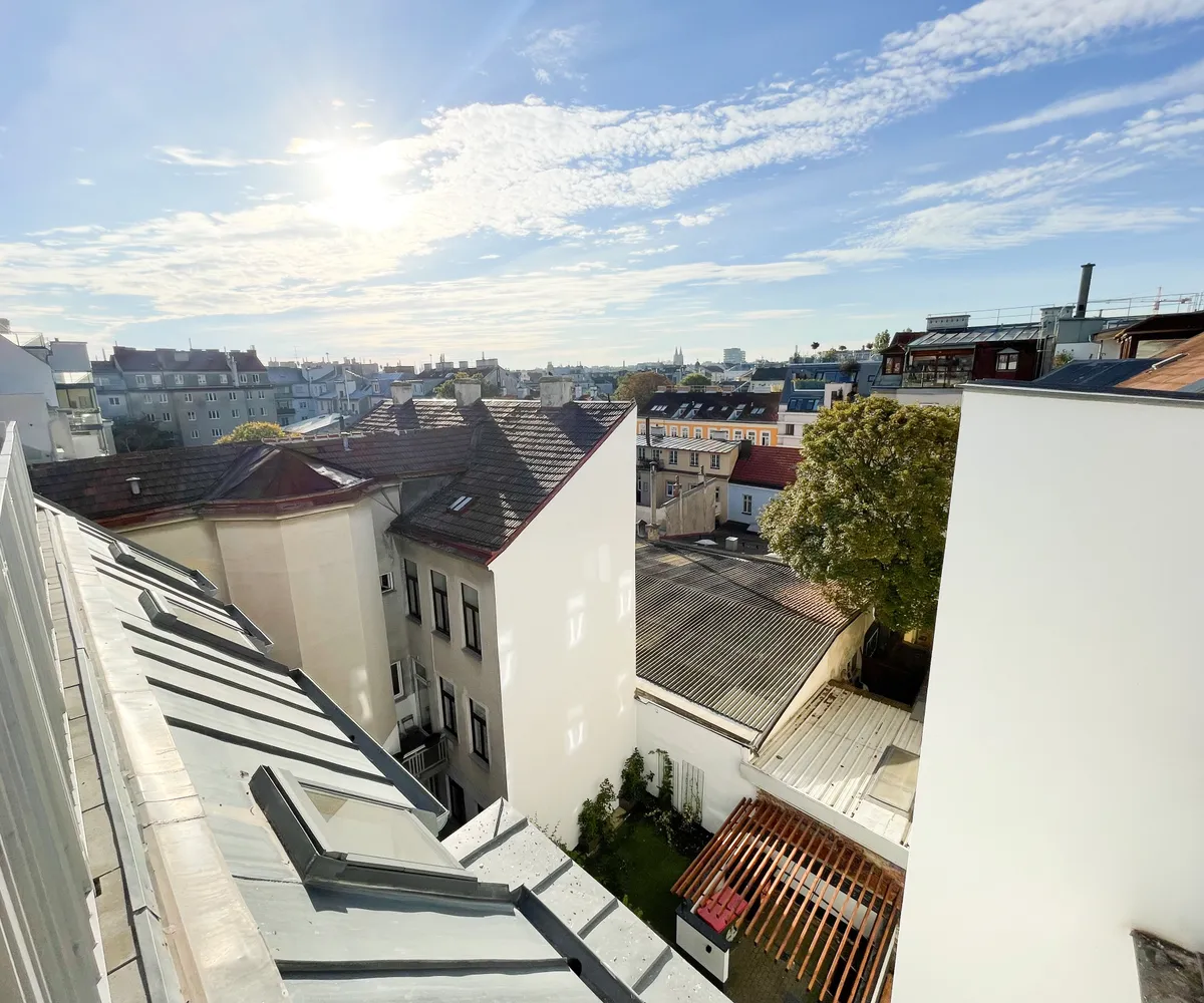 Diese geräumige klimatisierte 2-Zimmer-DG-Maisonettewohnung, teilt sich auf eine Wohnfläche von rund 80 m² und südseitige Terrasse (ca. 8 m²) in Richtung Innenhof auf und befindet sich in einem frisch sanierten Eckzinshaus in ruhiger Lage des 17. Wiener Gemeindebezirkes, lediglich 3 Autominuten vom AKH entfernt. Die Wohnung erreichen Sie durch den wunderschön revitalisierten Eingangsbereich und das modernisierte Stiegenhaus.