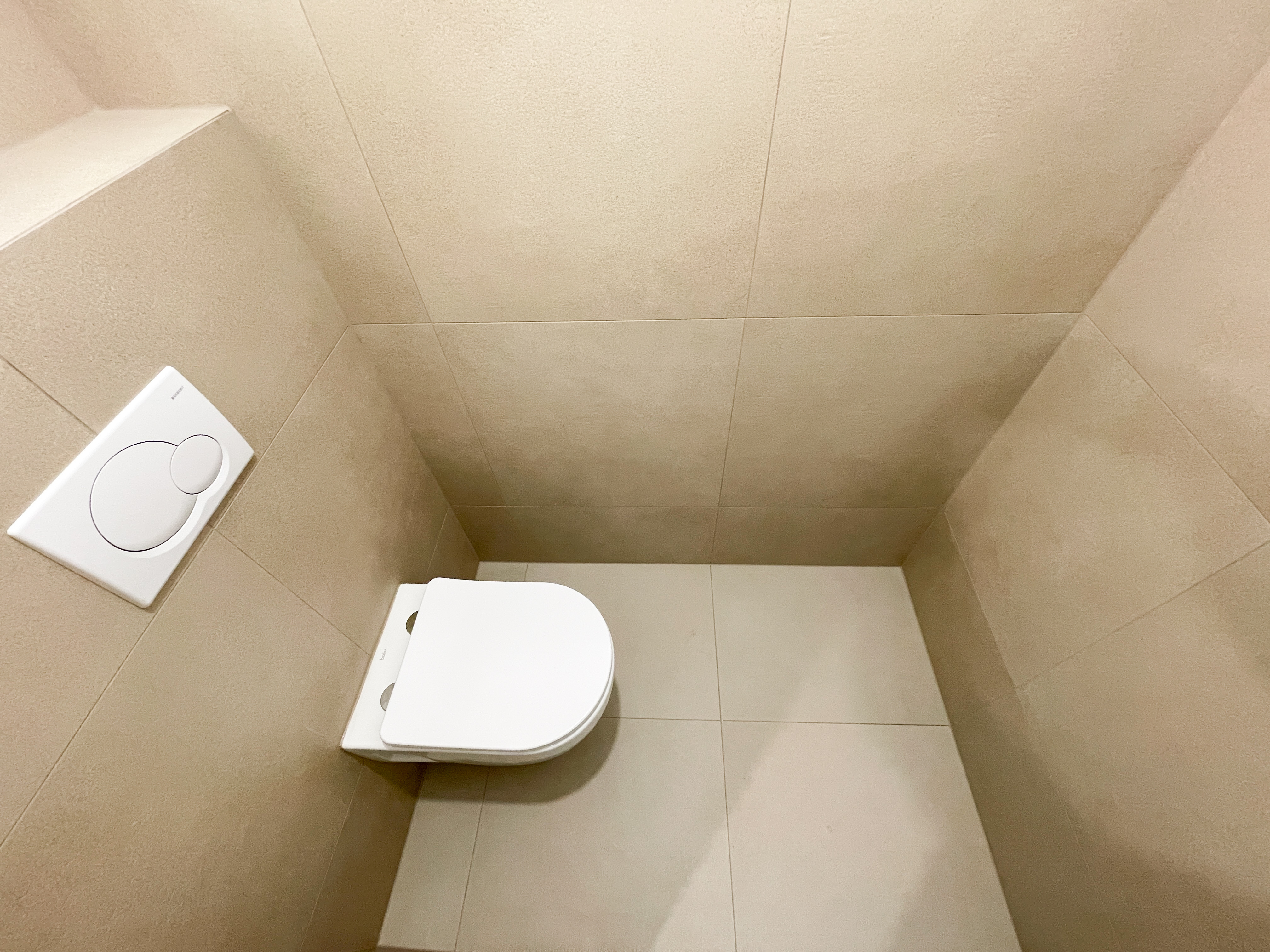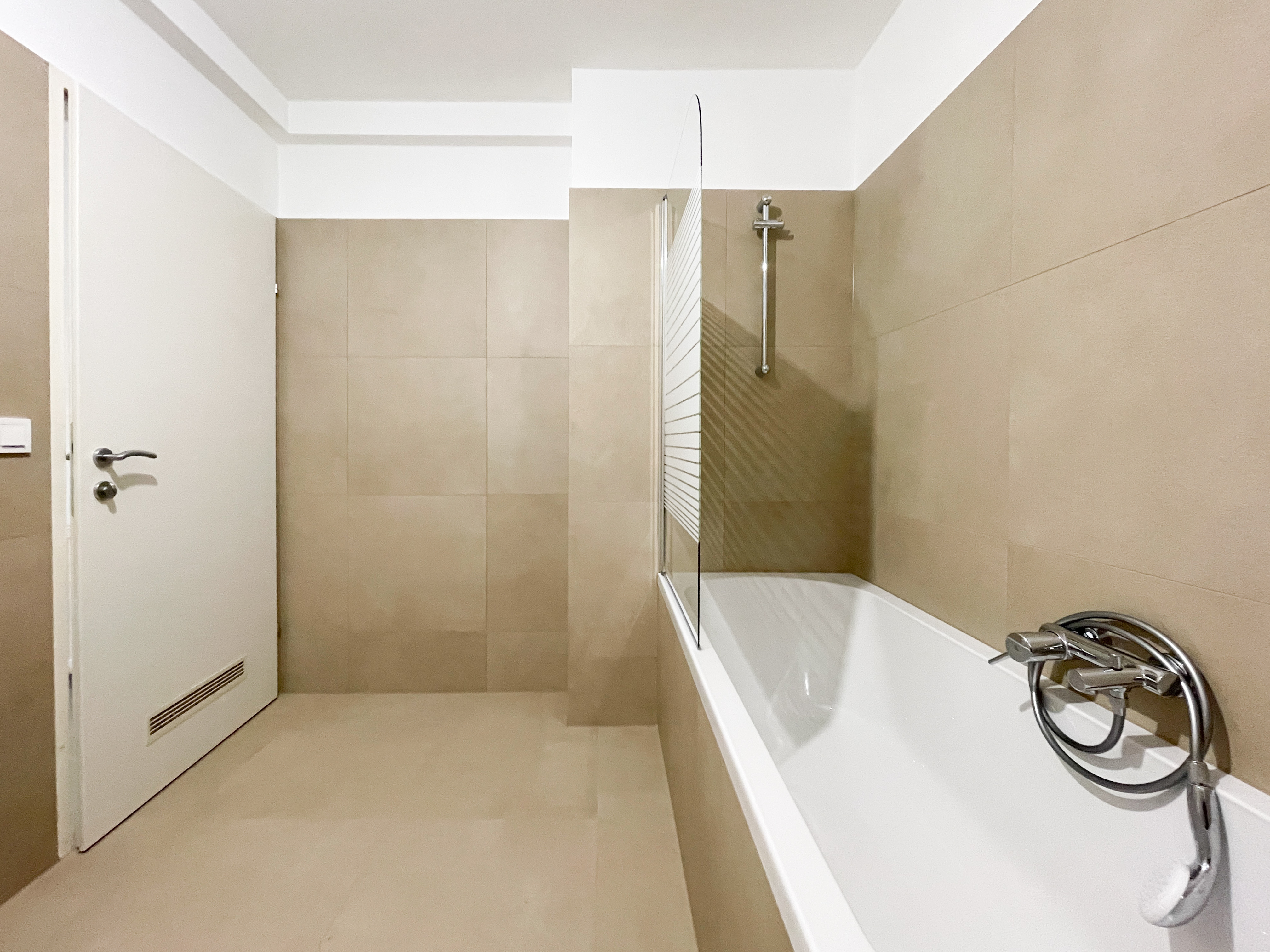 Die Wohnung unterteilt sich in einen hellen Eingangsbereich über den das neue Badezimmer sowie das neue separate WC und der Abstellraum erreichbar ist. Zusätzlich gelangt man auch in das Schlafzimmer, welches nach Norden gerichtet ist. In der zweiten Etage befindet sich die Wohnküche inkl. neuer vollausgestatteter Küche, über welche man auch zu der Terrasse gelangt. Abgesehen von der Klimaanlage in Schlafzimmer und Wohnküche können Sie die Wohnung mittels manuell bedienbarer Außenbeschattung verdunkeln.