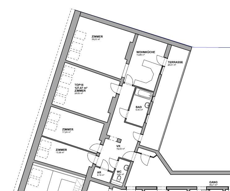 - Die ca. 128m² große 4,5-Zimmerwohnung verfügt über einen Vorraum, drei Schlafzimmer, ein großes Wohnzimmer, einen Abstellraum, einer vollausgestatteten großen Küche, ein Badezimmer mit Wanne und Fenster, Waschmaschinenanschluss, Toilette, sowie einer separaten Toilette. Abgerundet wird die Wohnung mit einer großen Terrasse.
