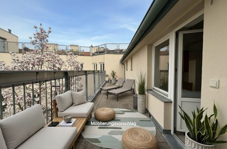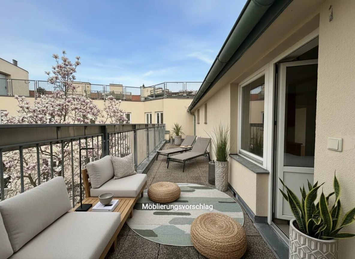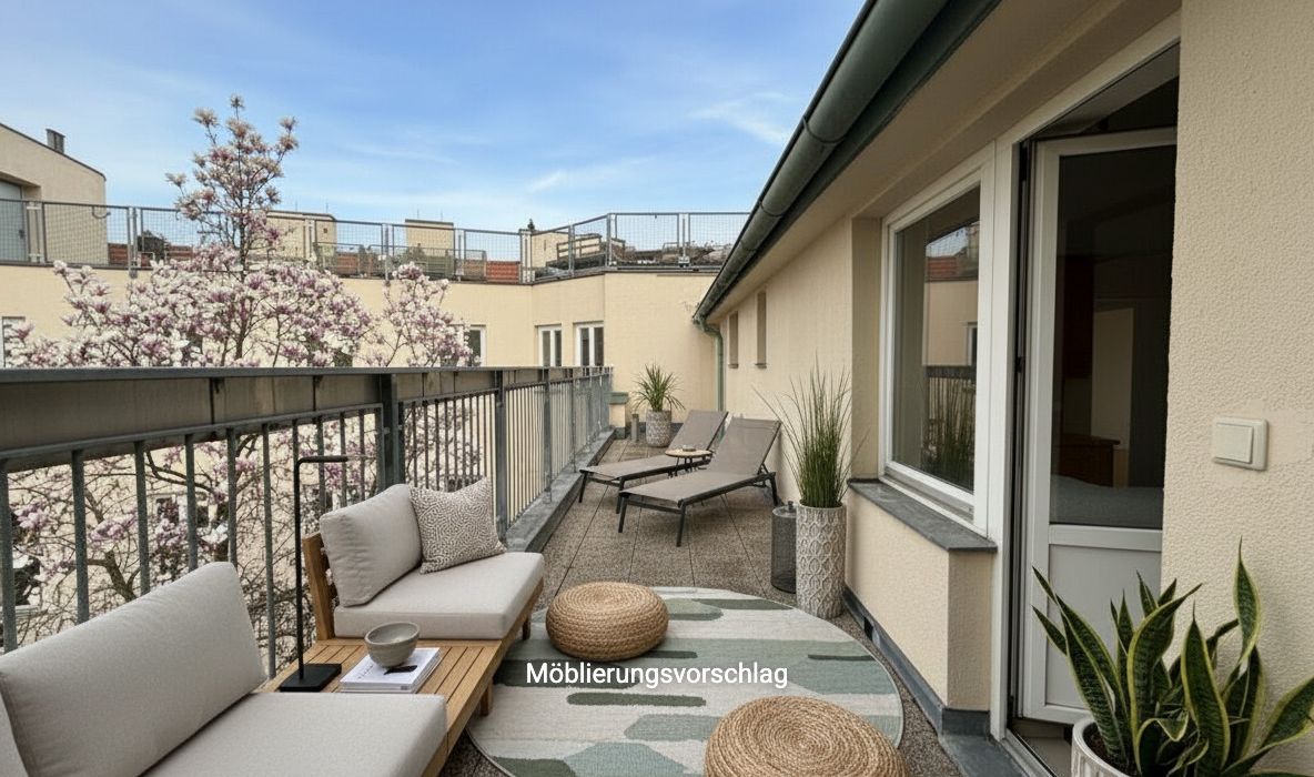 20 m² große, hofseitig ausgerichtete Terrasse