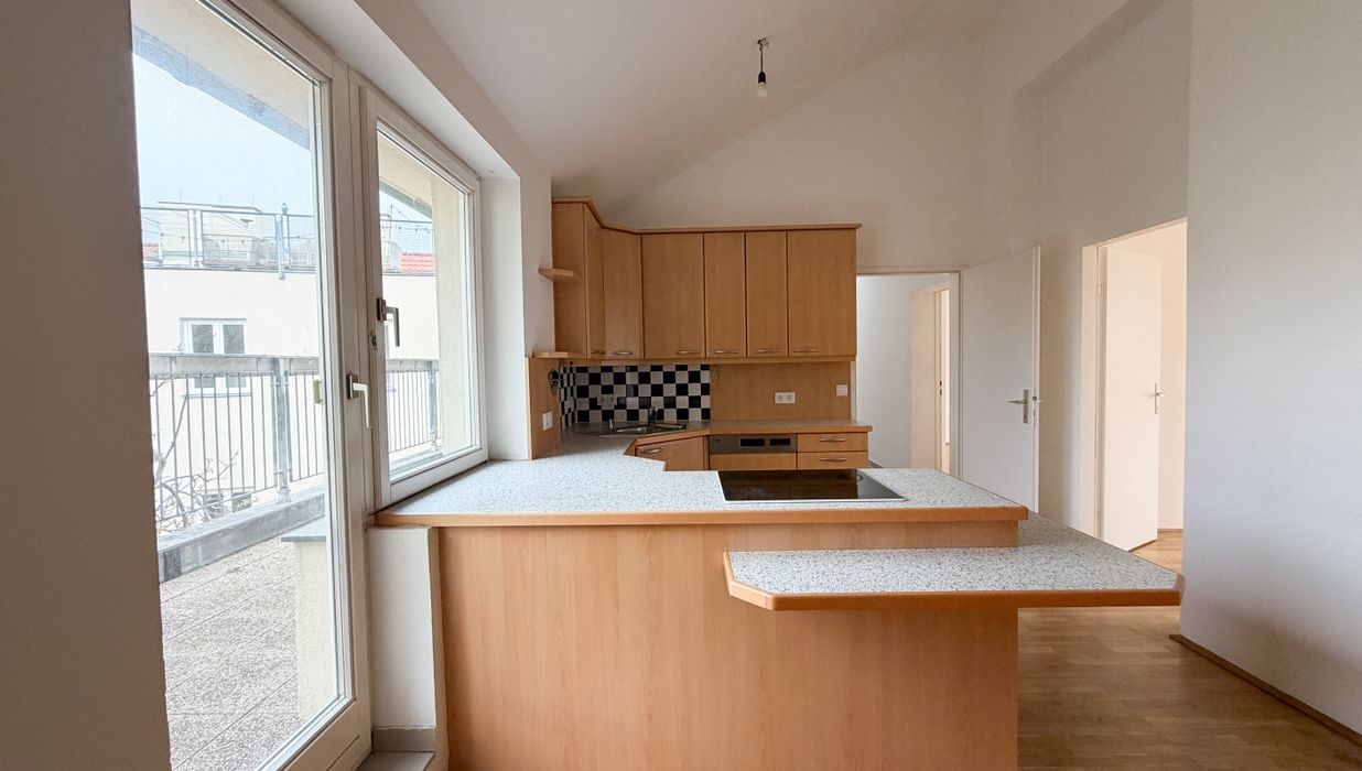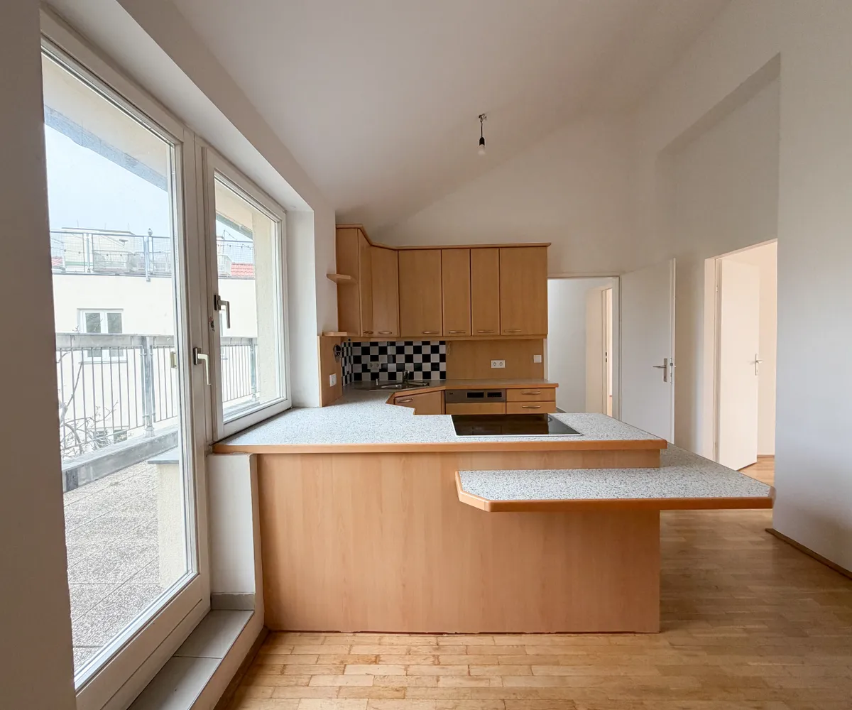 Diese großzügige Dachgeschosswohnung befindet sich in einem gepflegten Altbau-Eckhaus an der Ottakringer Straße / Rosensteingasse und bietet eine gelungene Kombination aus urbanem Leben und ruhigem Rückzugsort.