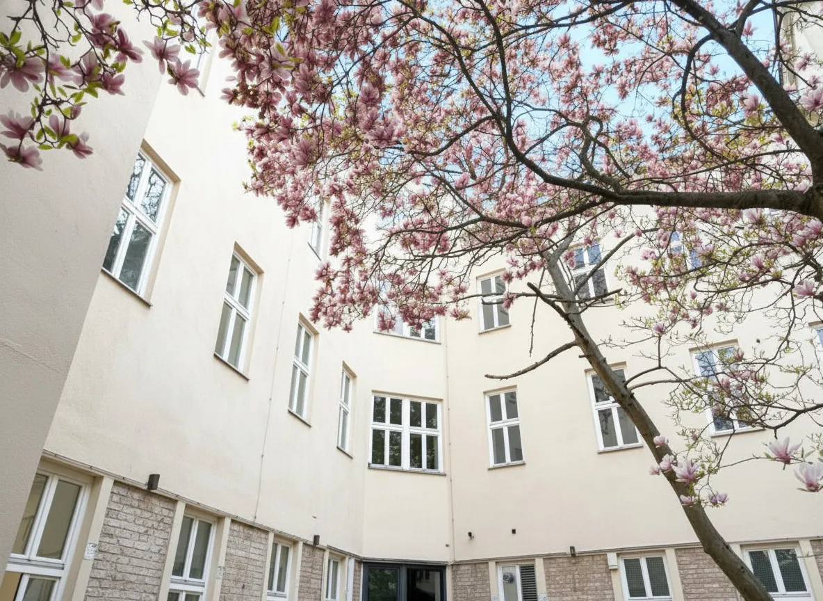 – mit Blick in den begrünten Innenhof und einem