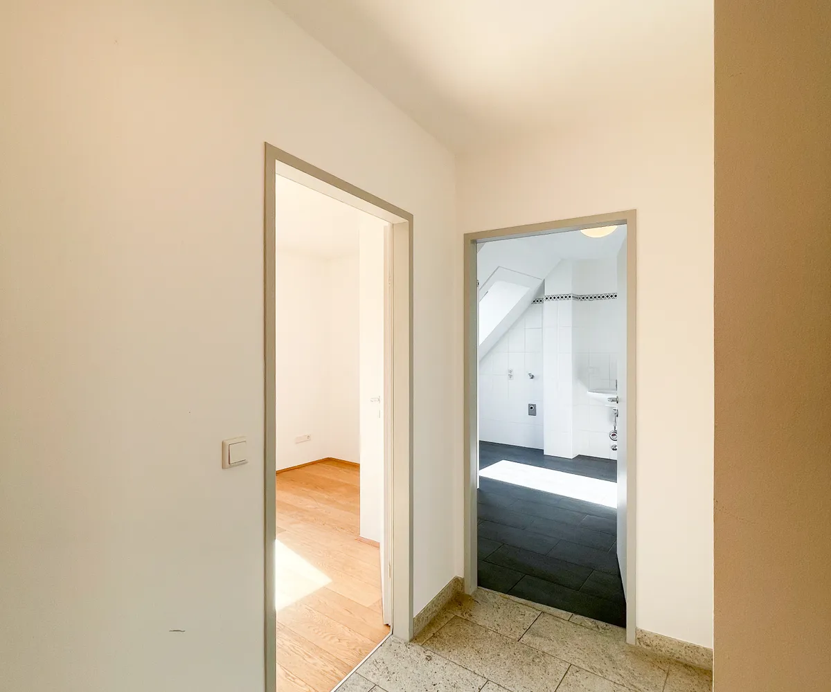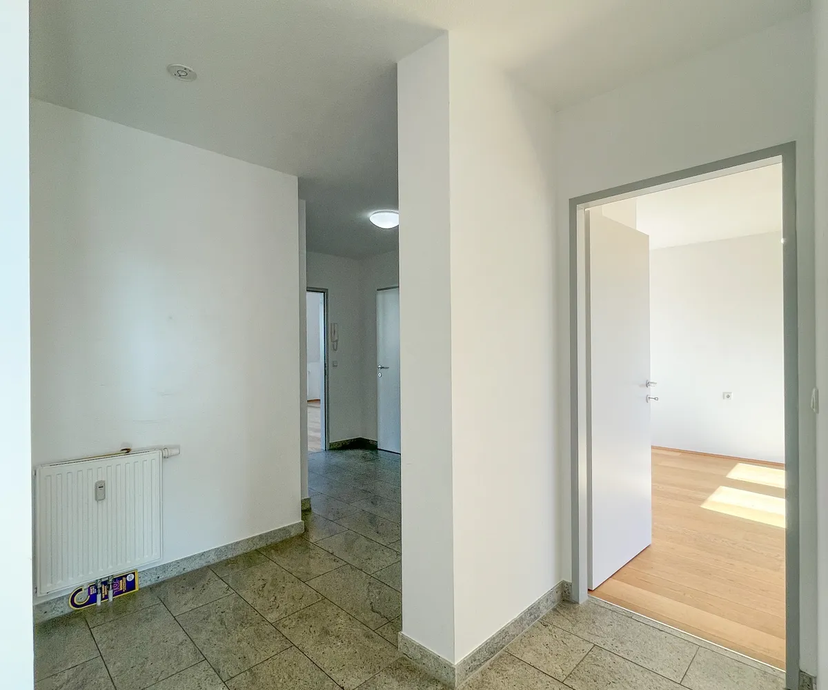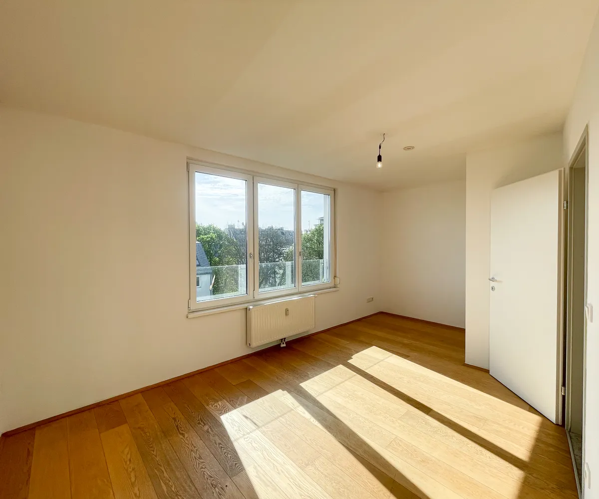 Durch die großen Fenster und die traumhafte Ausrichtung Richtung Westen und Osten wirkt die Wohnung hell und freundlich. Zudem bietet der Abstellraum weiteren Stauraum.