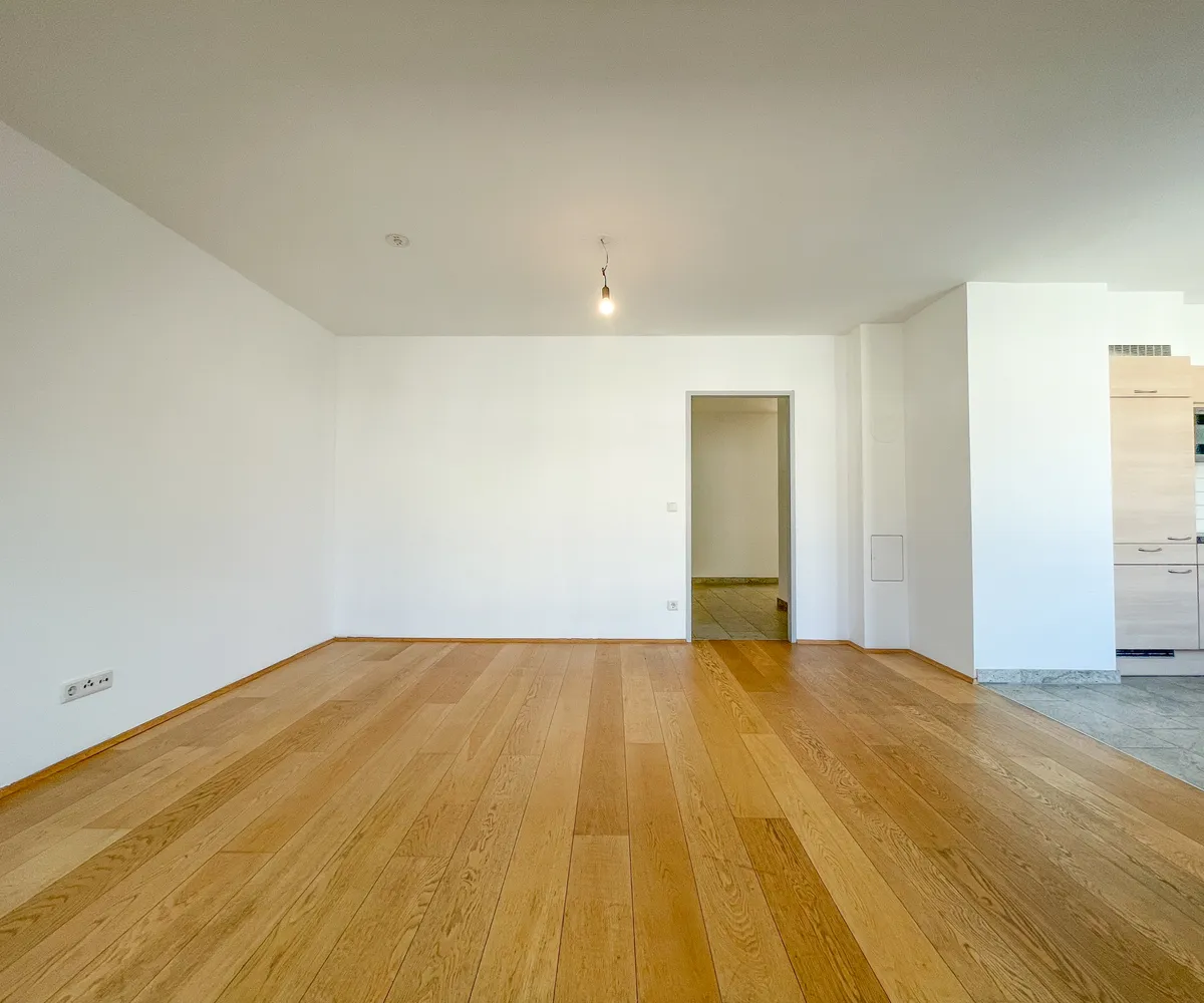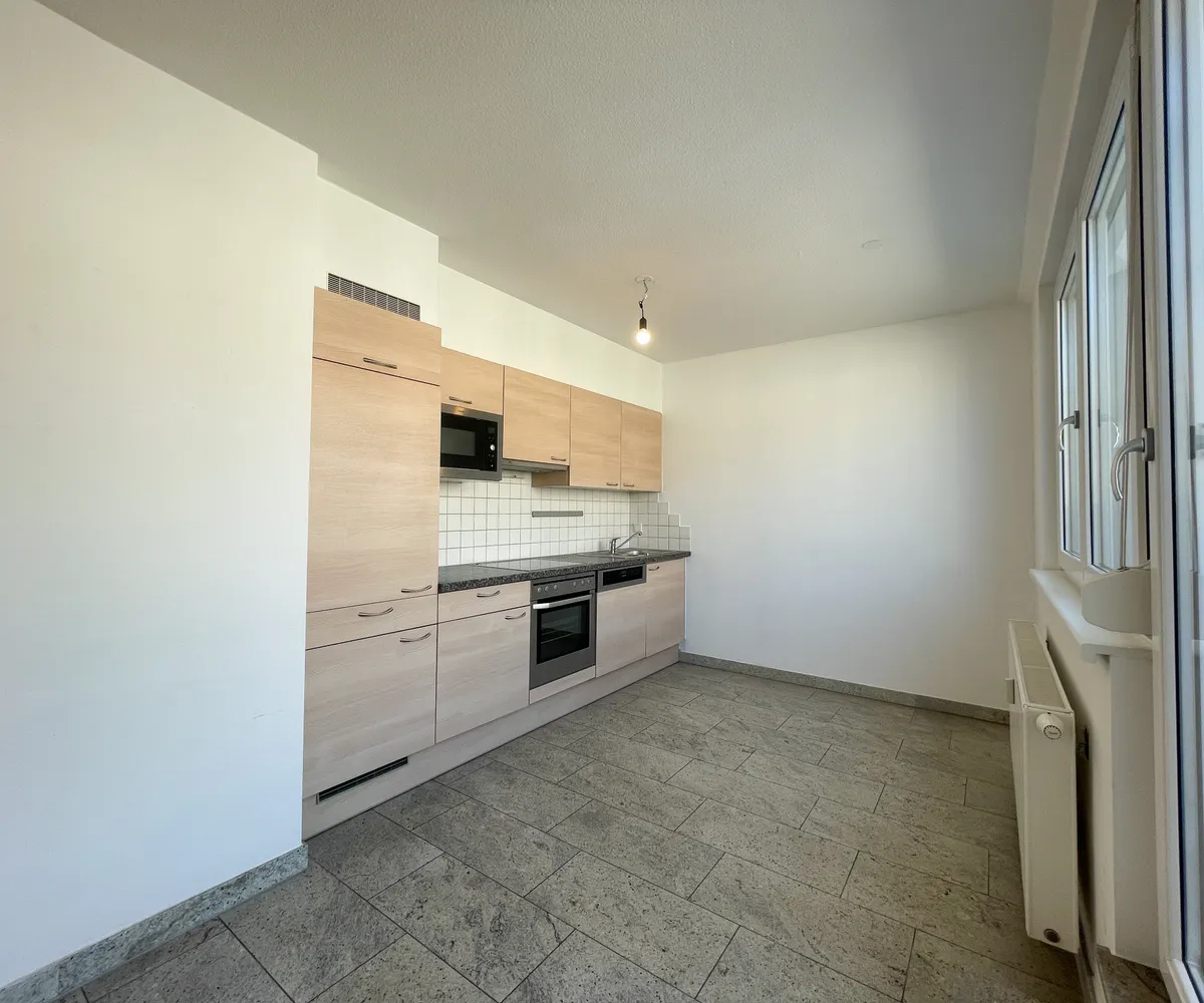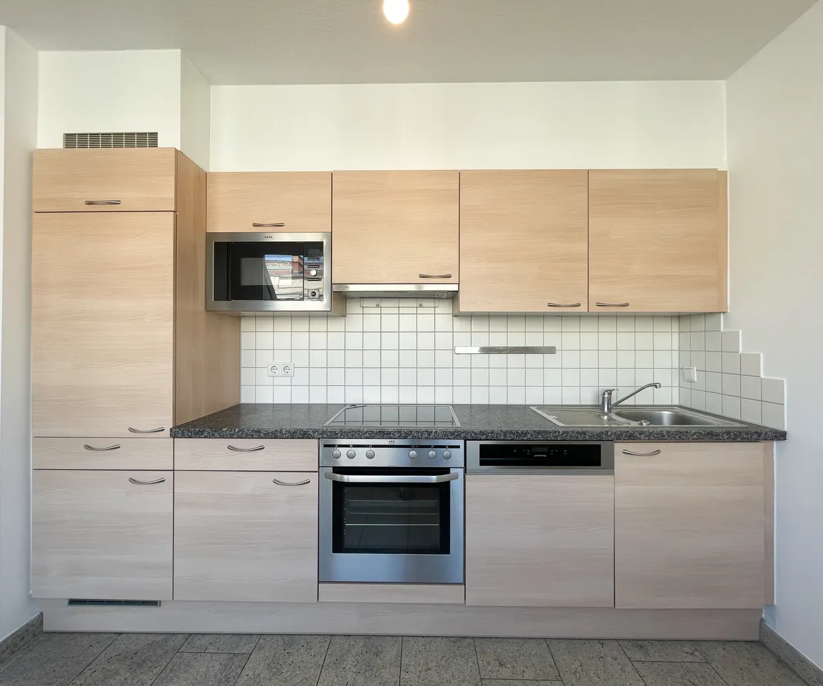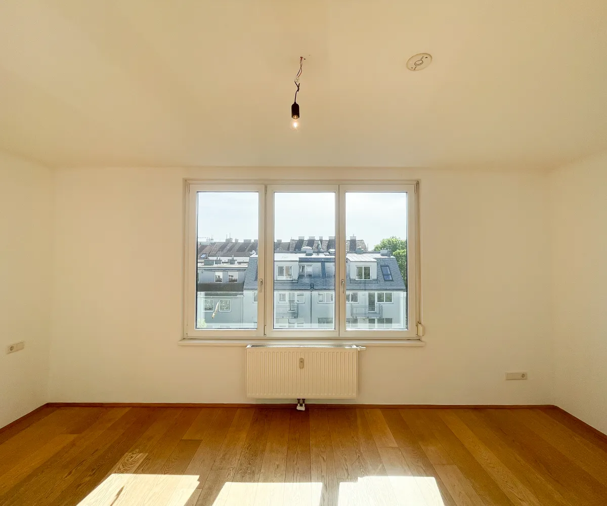 Durch die großen Fenster und die traumhafte Ausrichtung Richtung Westen und Osten wirkt die Wohnung hell und freundlich. Zudem bietet der Abstellraum weiteren Stauraum.