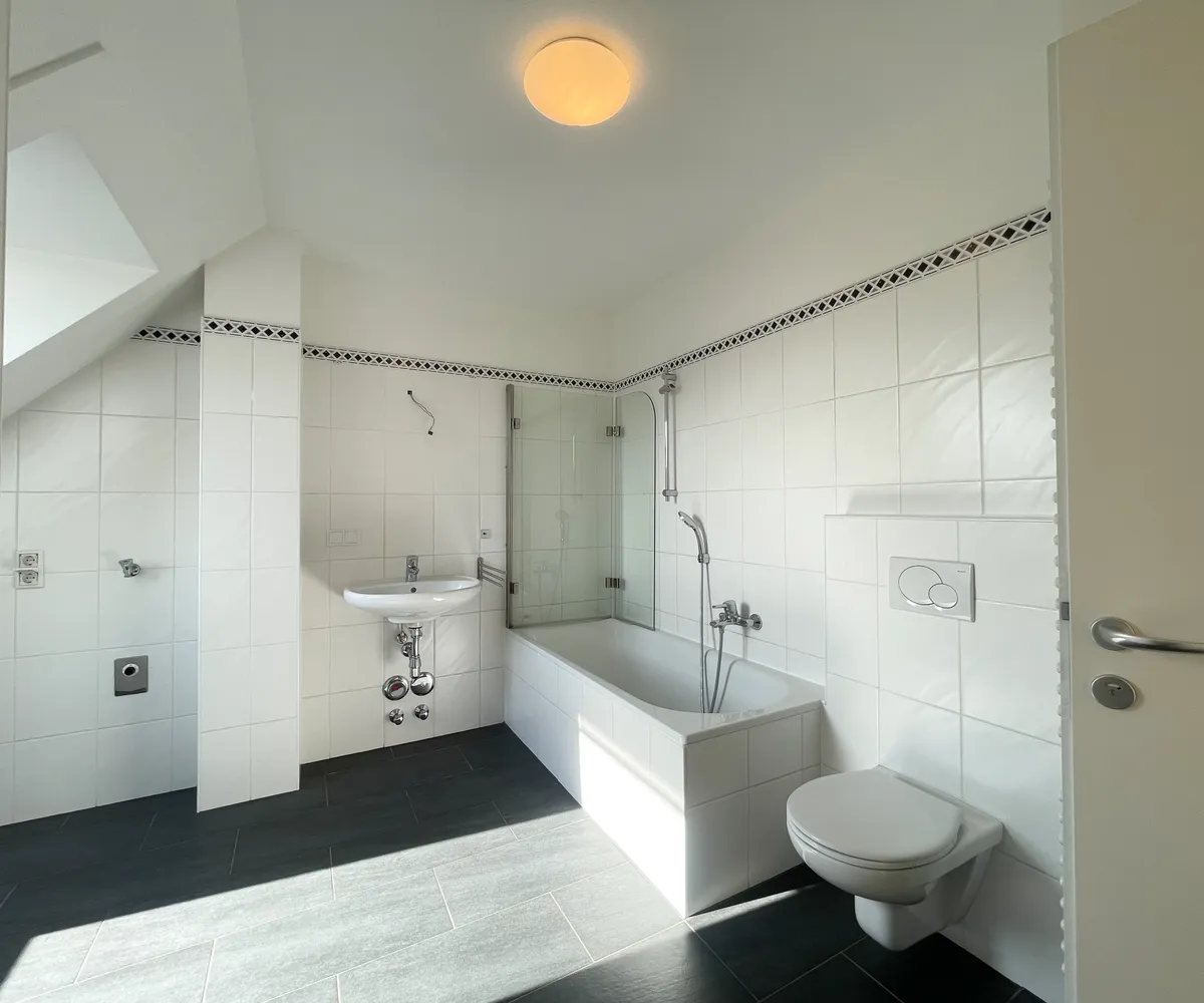 Diese schöne Wohnung liegt im Dachgeschoss eines 2008 errichteten Neubaus mit glatter Fassade und Personenaufzug. Sie verfügt über