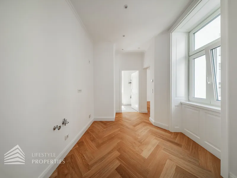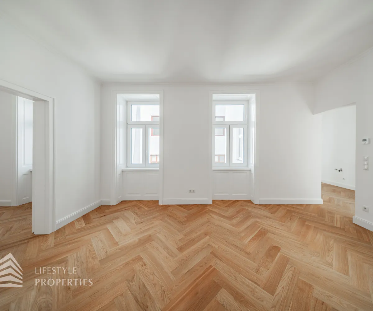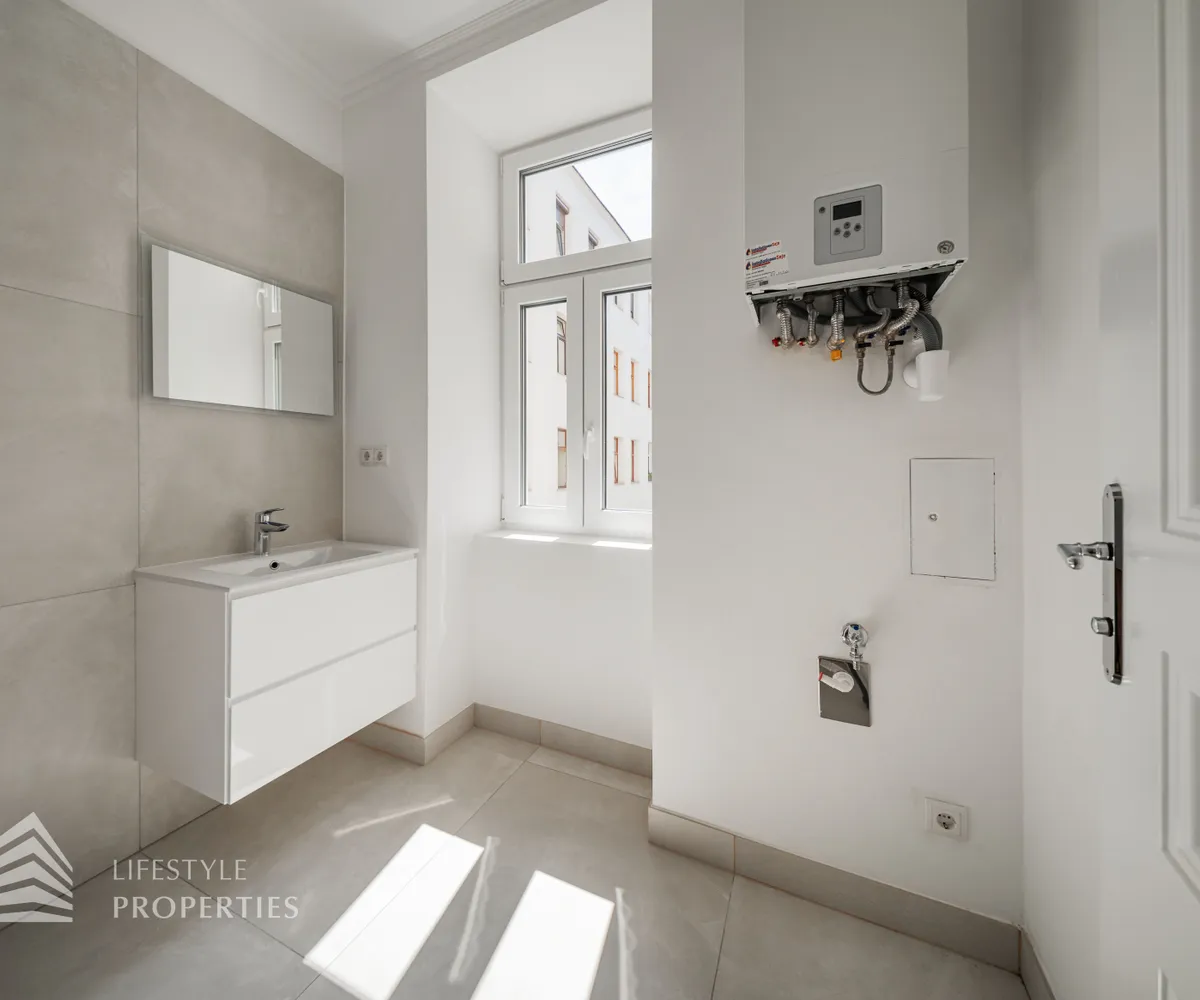 Die Wohnung ist ein Erstbezug und befindet sich im 2. Stock eines schönen Altbaus, Sie teilt sich in einen Vorraum, einen Wohnraum, ein Zimmer, eine Küche, ein Badezimmer und ein separates WC auf. Die Wohnräume sind mit einem schönen Parkettboden ausgestattet und die Nassräume sind verfliest. Beheizt wird mittels Gas-Etagenheizung.