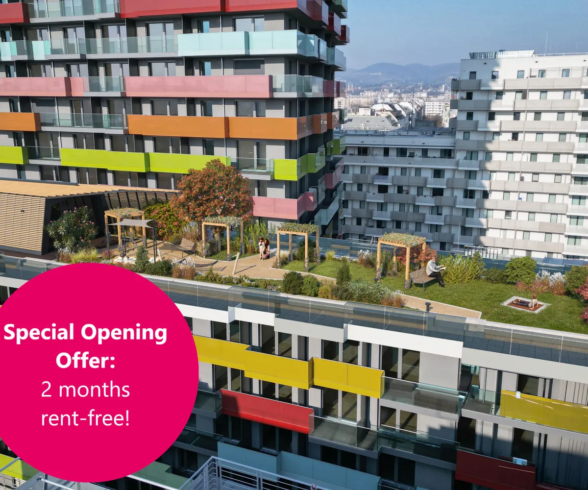 Neben Ihrem privaten Wohnbereich profitieren Sie von großzügigen, hochwertig gestalteten Gemeinschaftsflächen, die weit über das Übliche hinausgehen: Ob konzentriertes Arbeiten im Co-Working Space, entspannte Stunden in der stilvollen Bewohner Lounge oder aktive Pausen im hauseigenen Fitness- und Yogastudio – hier finden Sie genau den Ort, den Sie gerade brauchen. Für gesellige Momente stehen Ihnen ein exklusiver Private-Dining-Raum, ein Gaming Room und ein einladender Kinosaal zur Verfügung. Wer kreativ tätig werden möchte, findet im professionell ausgestatteten Podcast Raum den idealen Rahmen. Ein besonderes Highlight ist die grüne Dachterrasse mit Gemeinschaftsgarten – ein Rückzugsort über den Dächern der Stadt, der zum Entspannen, Gärtnern und Genießen einlädt.