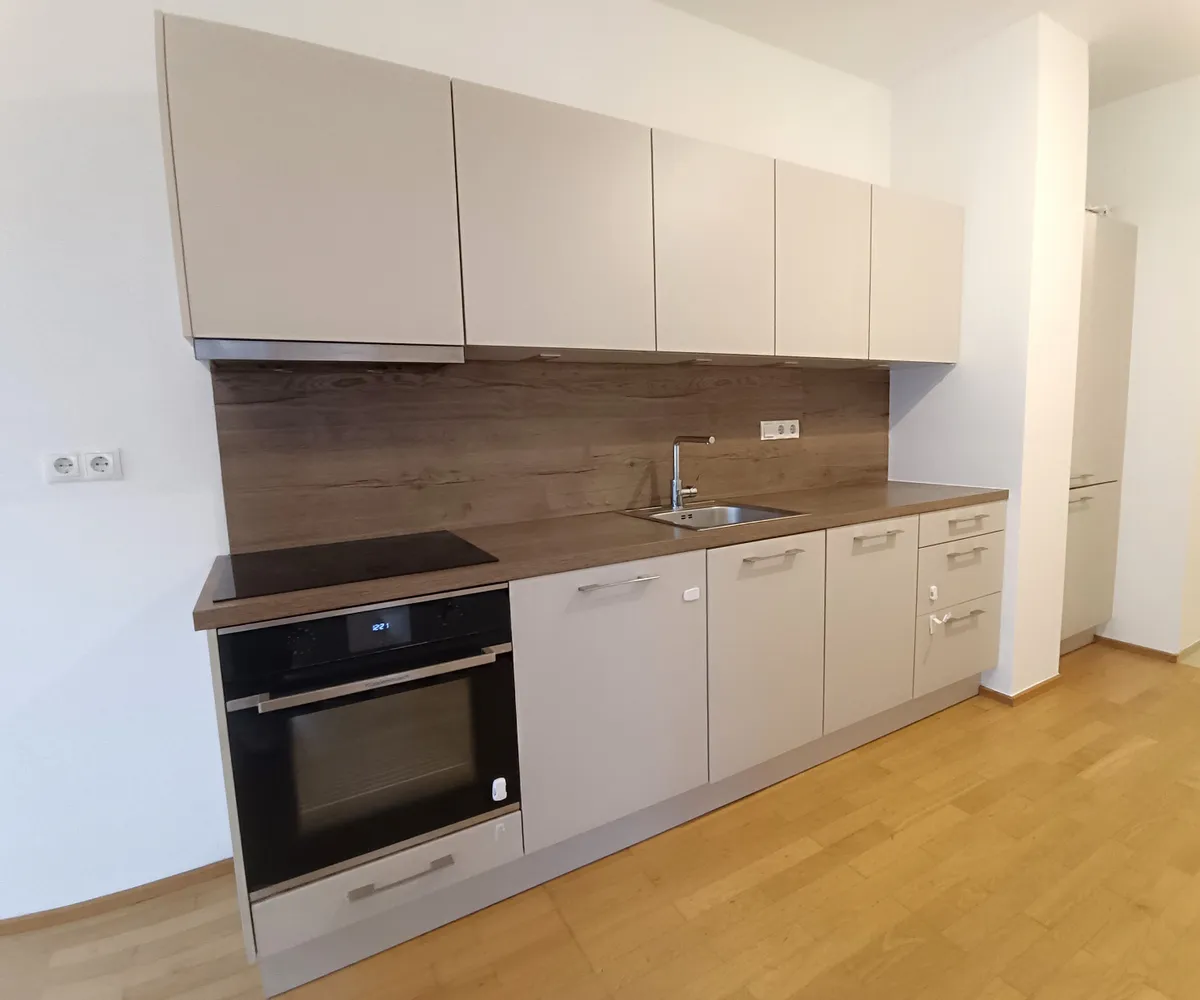 Die Wohnküche bietet eine Fläche von rund 34,26 m² und bietet ausreichend Platz für die persönliche Einrichtung und Gestaltung. Der geschmackvolle Küchenverbau bietet eine Ausstattung, die keine Wünsche offen lässt. Ceran-Kochfeld, Backoffen, Dunstabzug, Geschirrspüler und Kühlschrank mit Gefrierfach. Alles ist vorhanden und dem entspannten Kochen steht nichts mehr im Weg.
