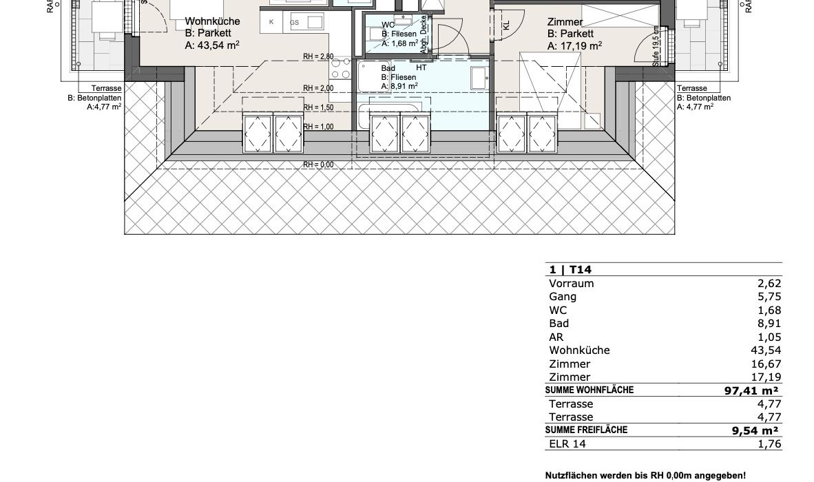 Top 14 | 3 Zimmer | ca. 97 m² + ca. 10 m² Terrassen