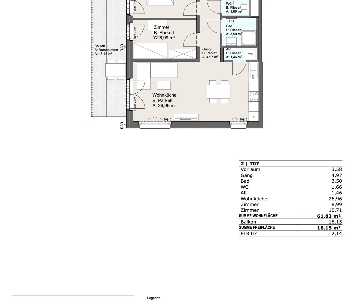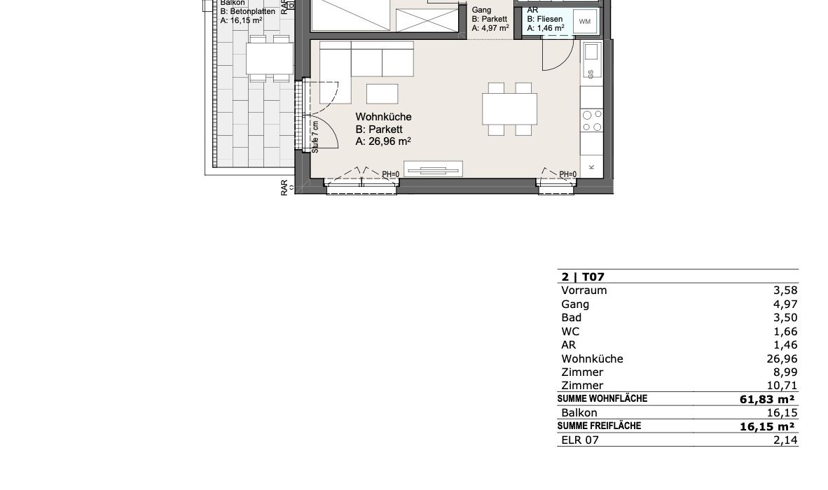 Top 07 | 3 Zimmer | ca. 62 m² + ca. 16 m² Balkon