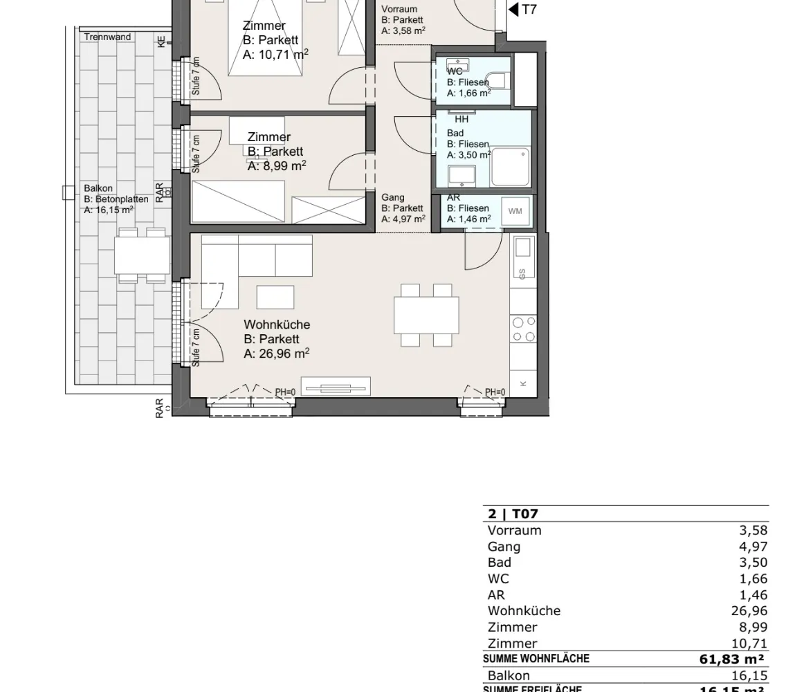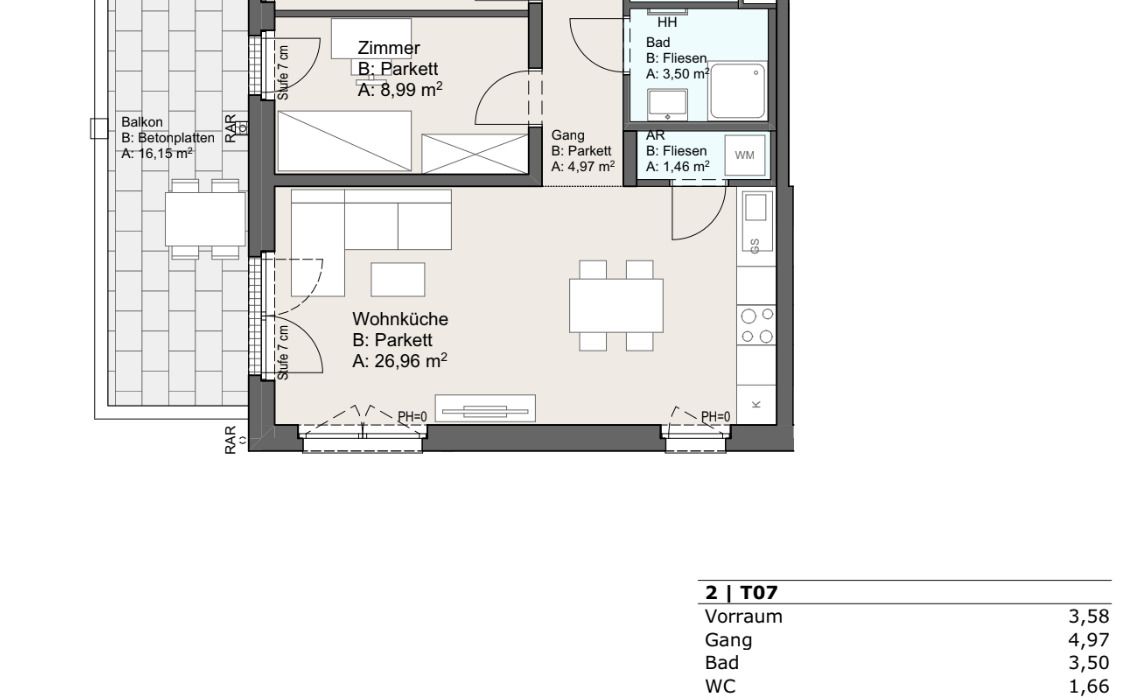 Top 07 | 3 Zimmer | ca. 62 m² + ca. 16 m² Balkon